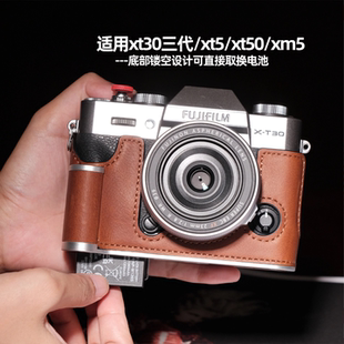 富士xt30三代手柄保护套餐真皮快拆手绳xt5xm5手柄xt50xe5相机套