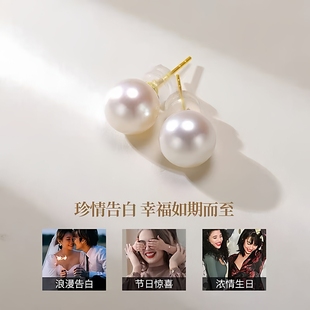 18K金耳饰 强光无核淡水大珍珠耳钉女正品 简约通勤 含薇 海蒂珠宝
