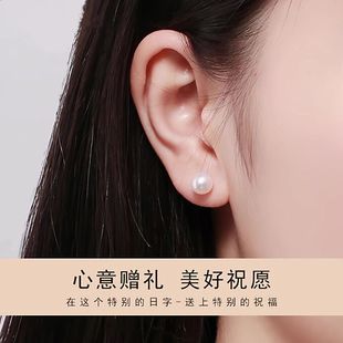 天然淡水珍珠耳钉6A级极强光媲美日本akoya海水珠耳饰925纯银耳环