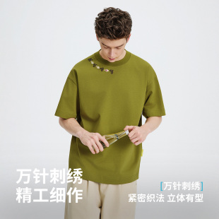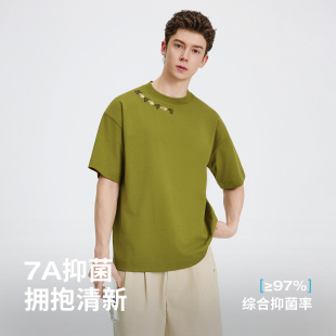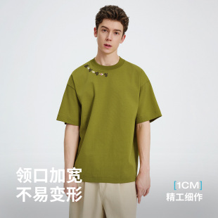 内搭上衣 休闲体恤半袖 Navigare小帆船绿色圆领宽松t恤男短袖 夏季