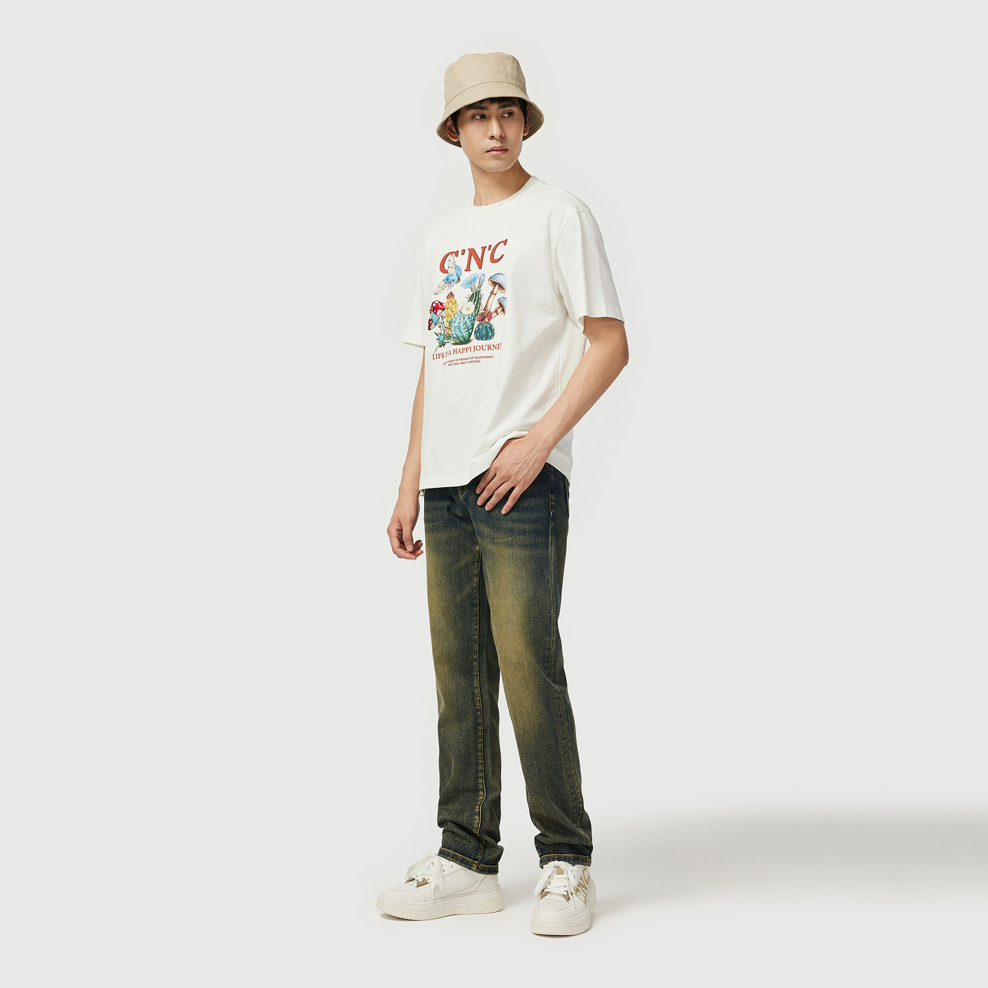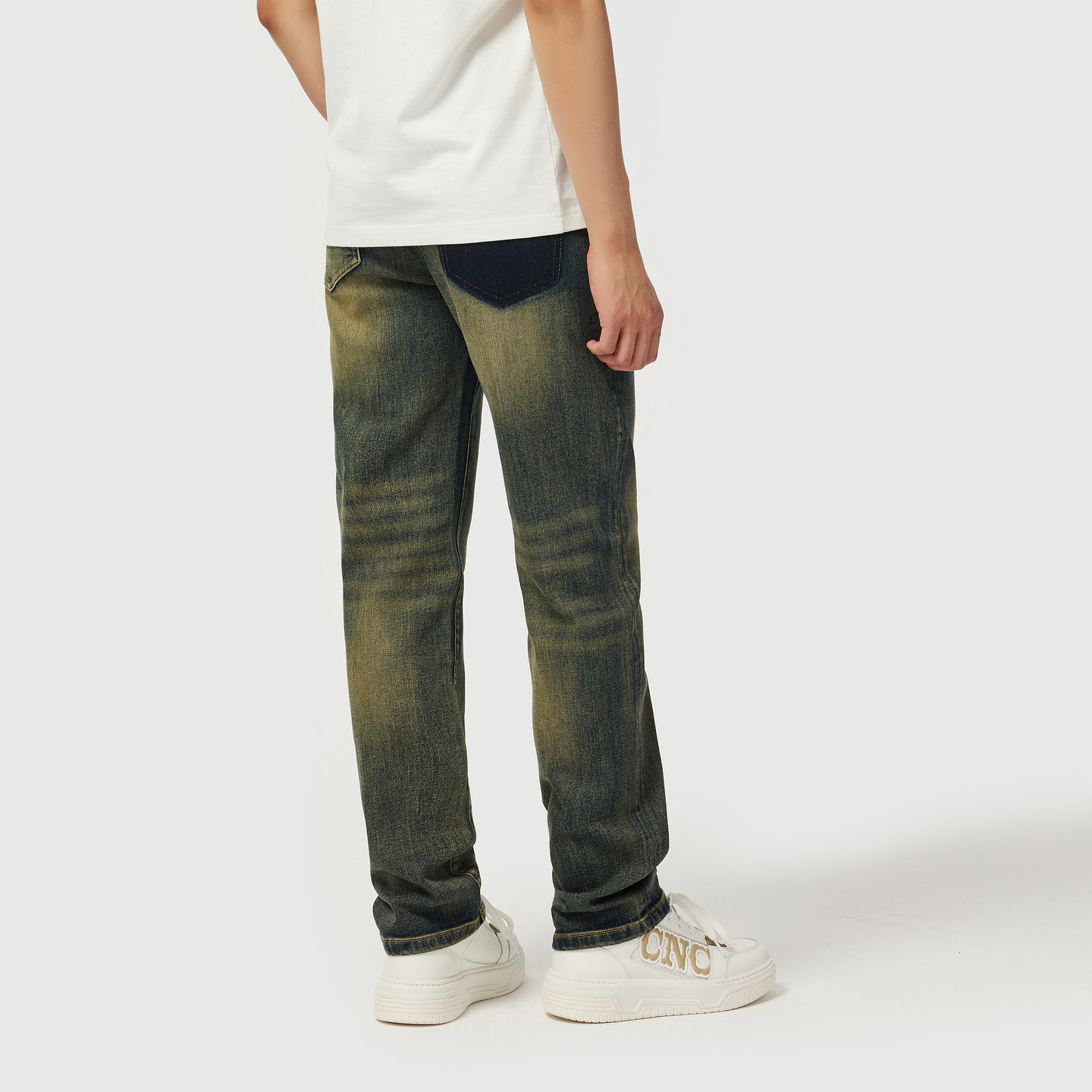简约休闲百搭合身弹力长裤 男新款 奥莱轻奢复古水洗牛仔裤 CNC男装