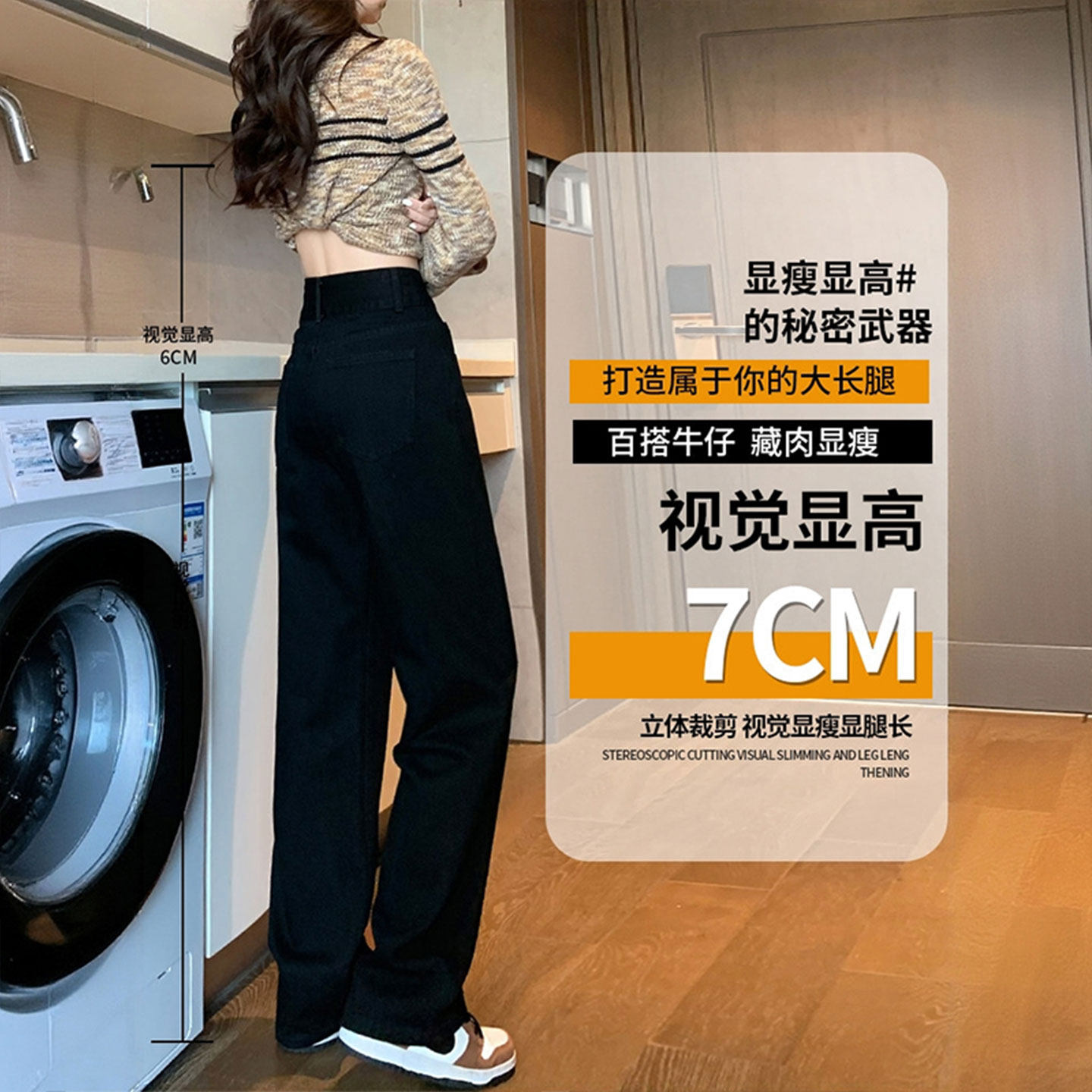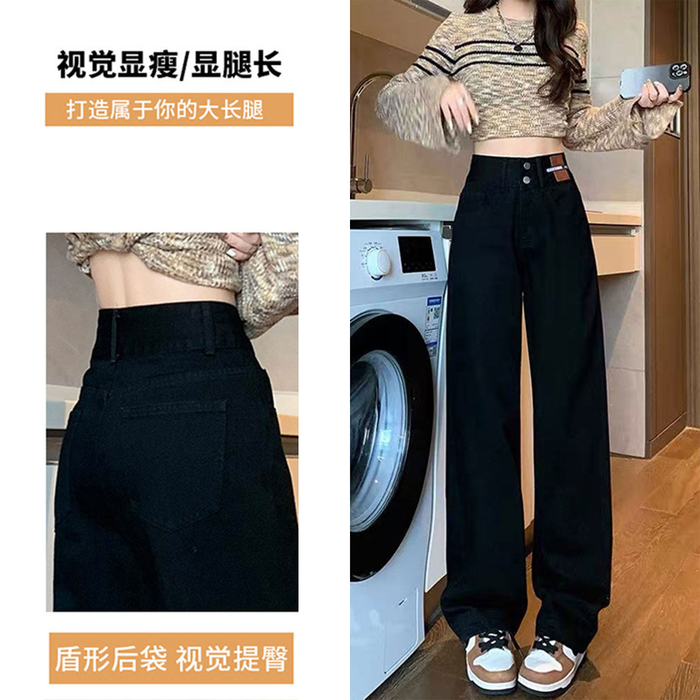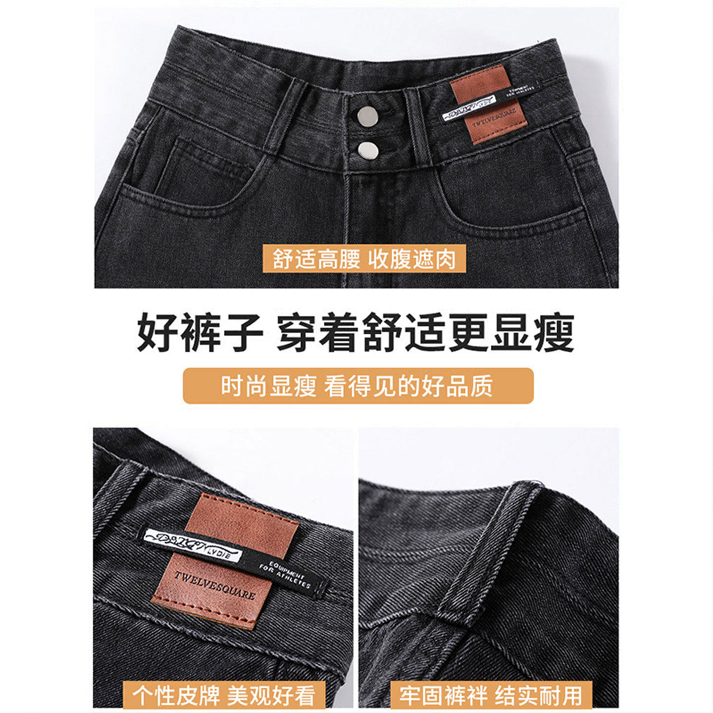 型超好看 牛仔裤 女复古时尚 大码 直筒裤 胖mm黑色版 显瘦窄版 子 女装