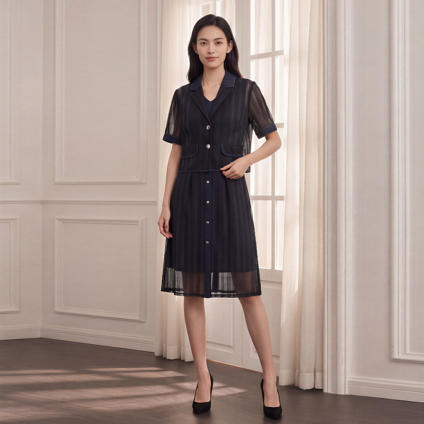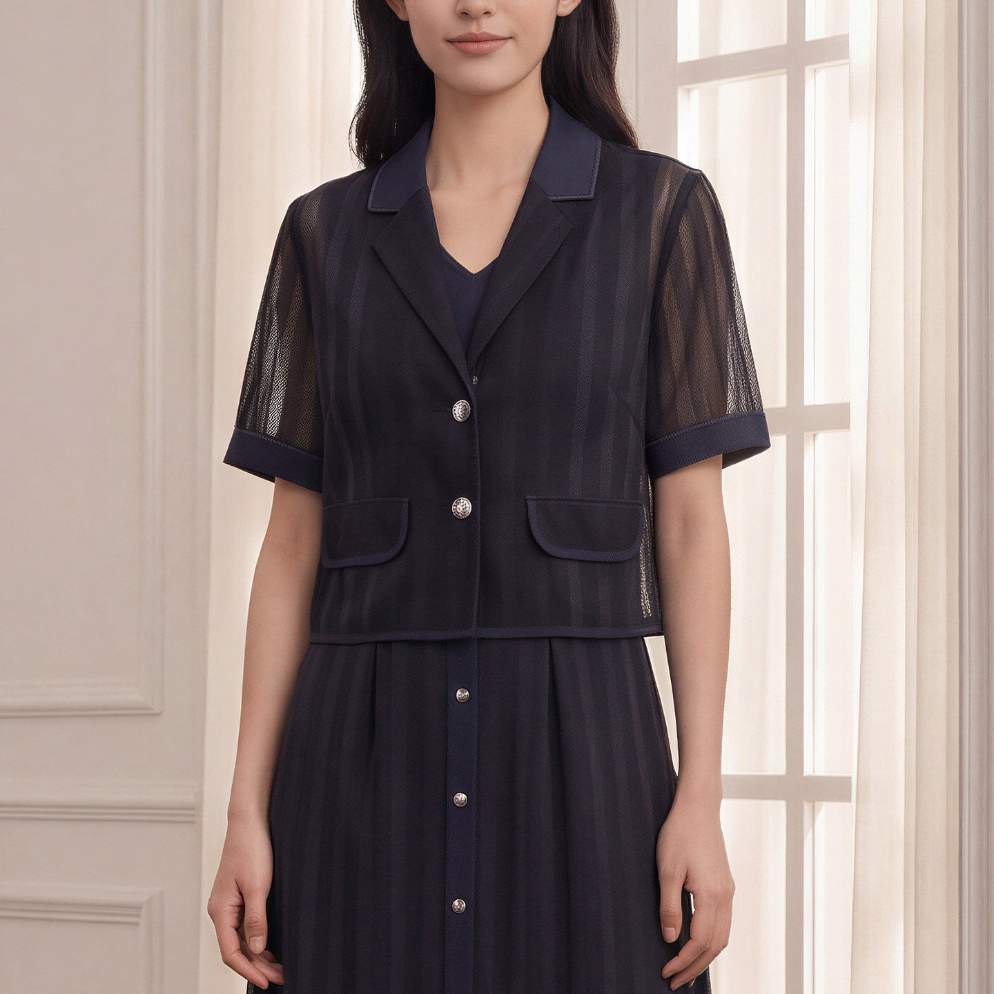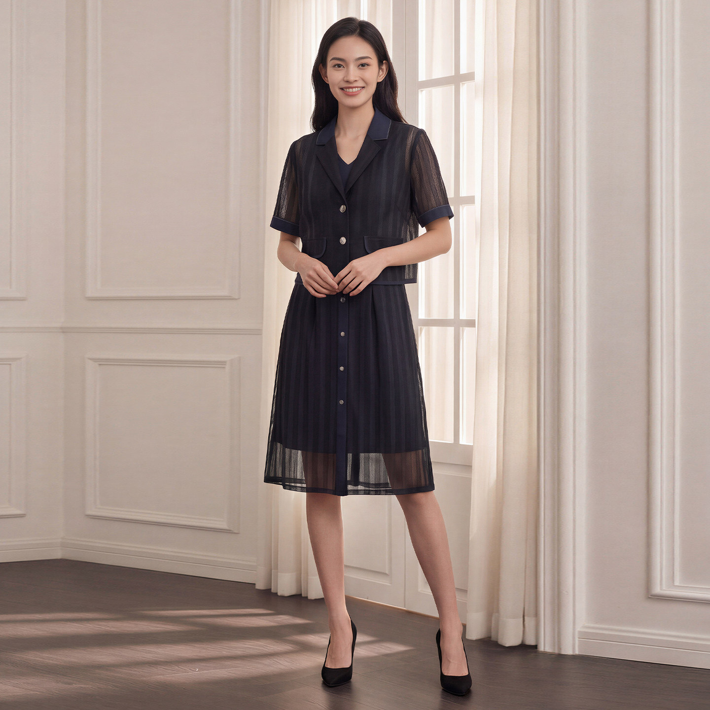 气质时尚 上衣外套连衣裙子两件套装 流行 蓝色短袖 马天奴2026夏新款