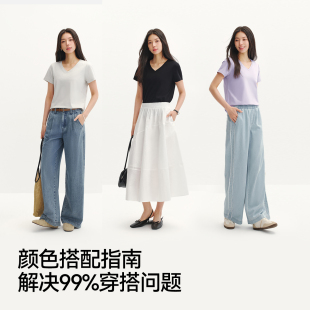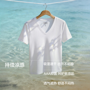 上衣 T恤女夏纯色V领正肩衣服吸湿速干抑菌2026新款 凉感T 森马短袖