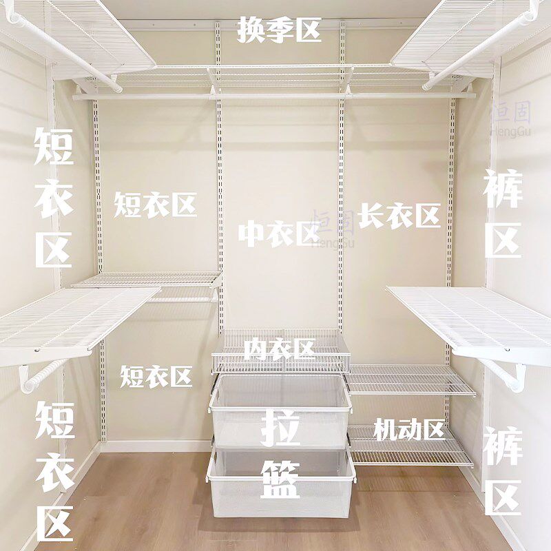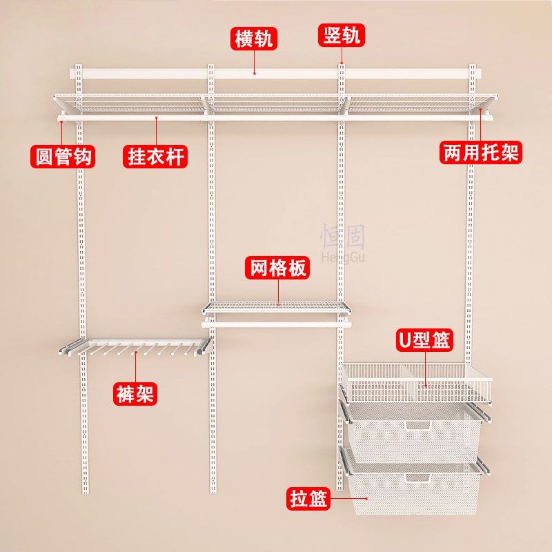新款 衣帽间配件砌墙衣柜壁挂衣架网格板拉篮 定制全金属环保开放式