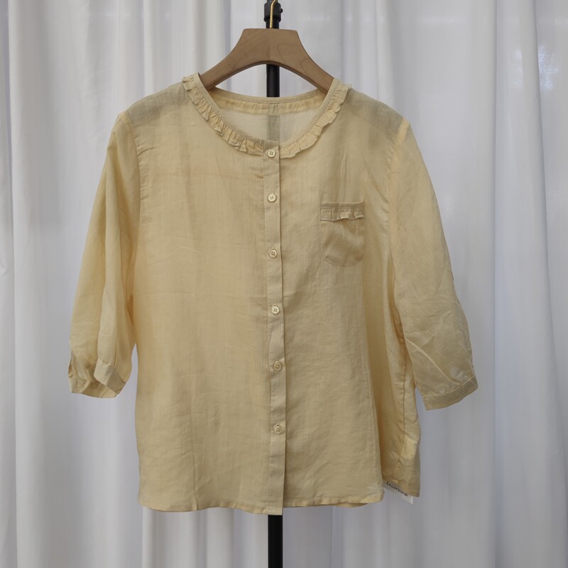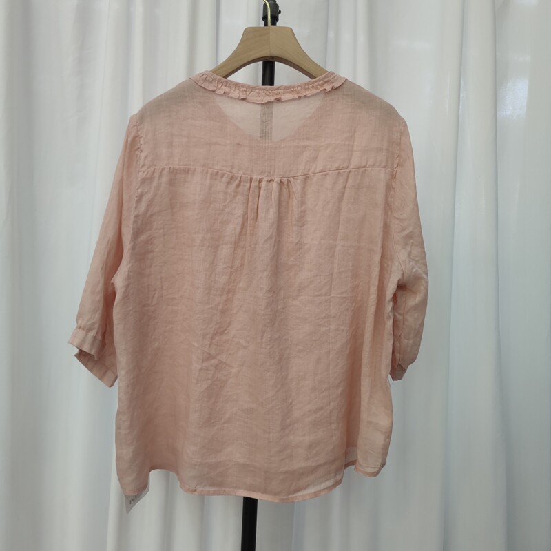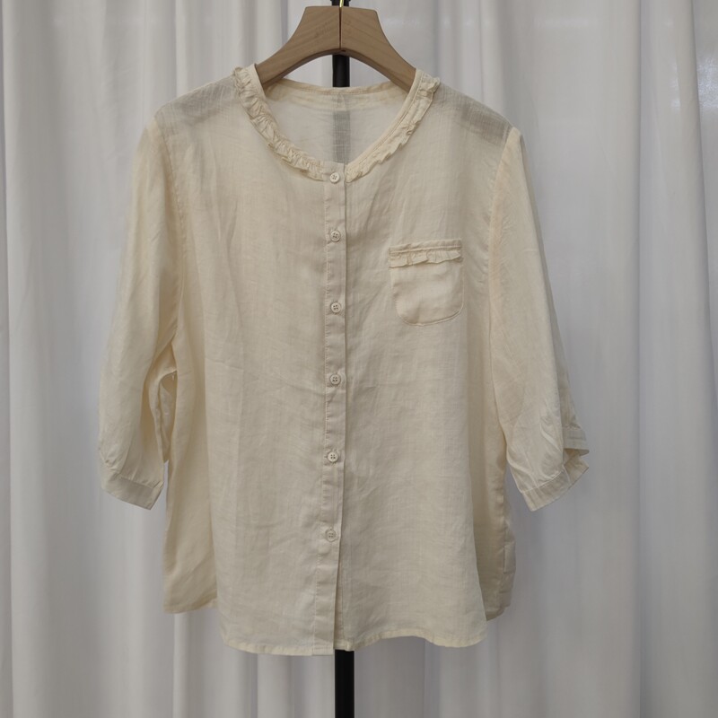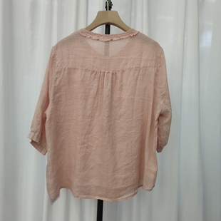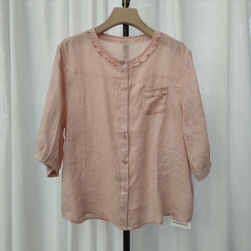 女宽松显瘦上衣女休闲棉麻苎麻 衬衫 奥可儿2628夏女装 圆领七分袖