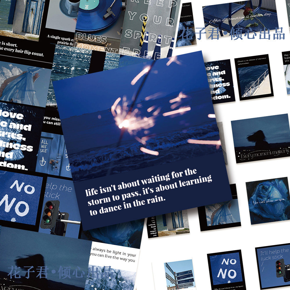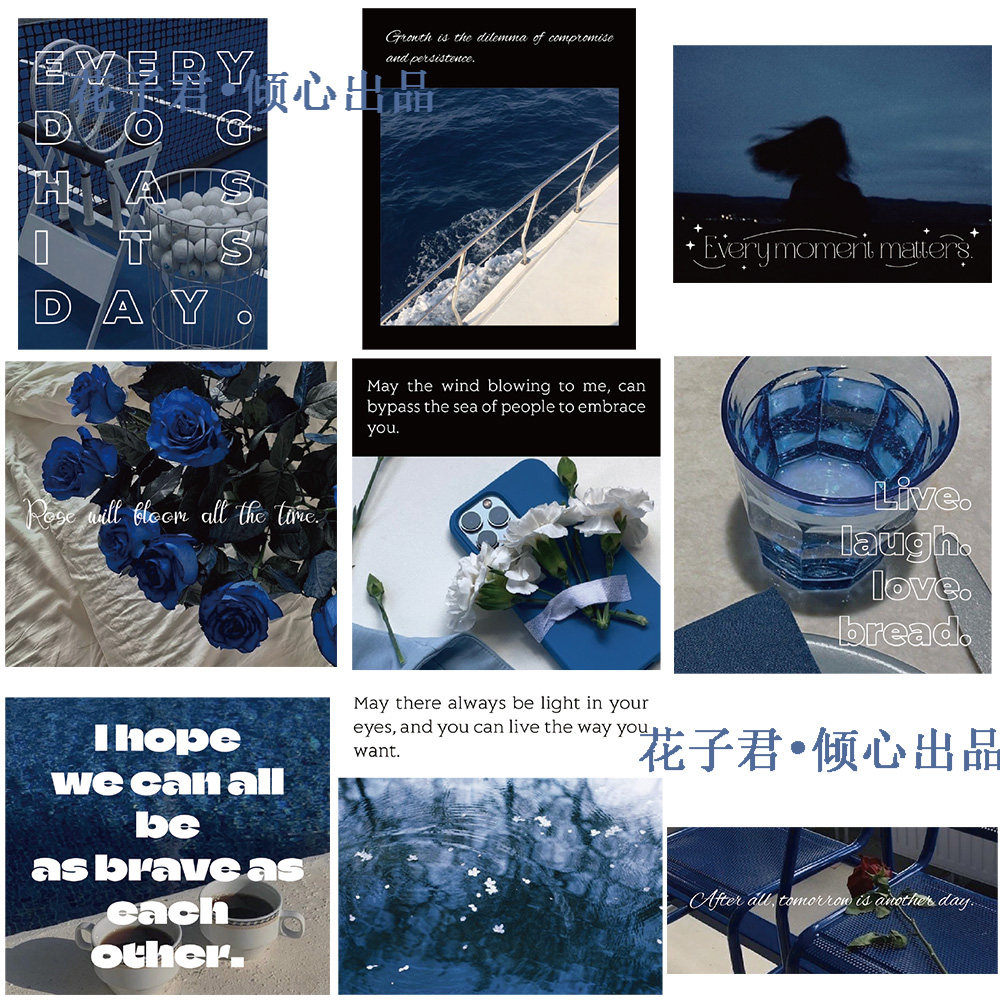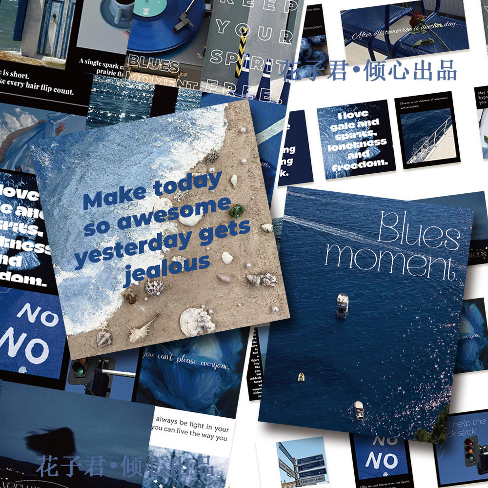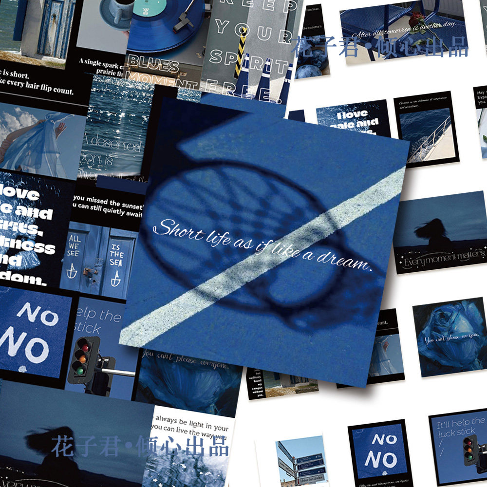 60张蓝调时刻贴纸ins风治愈小众小清新简约温馨创意装 饰手账贴画
