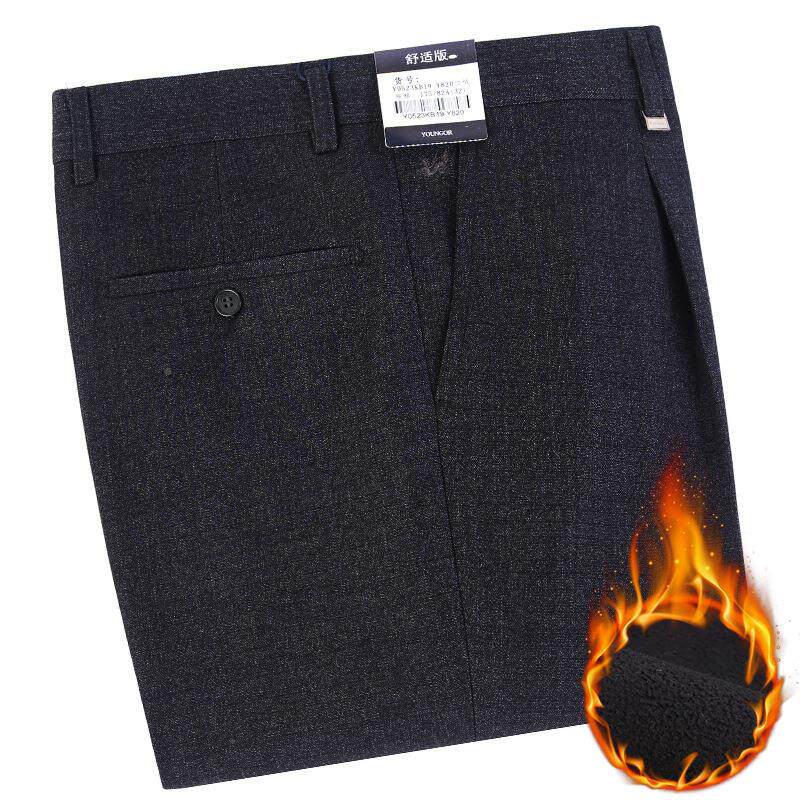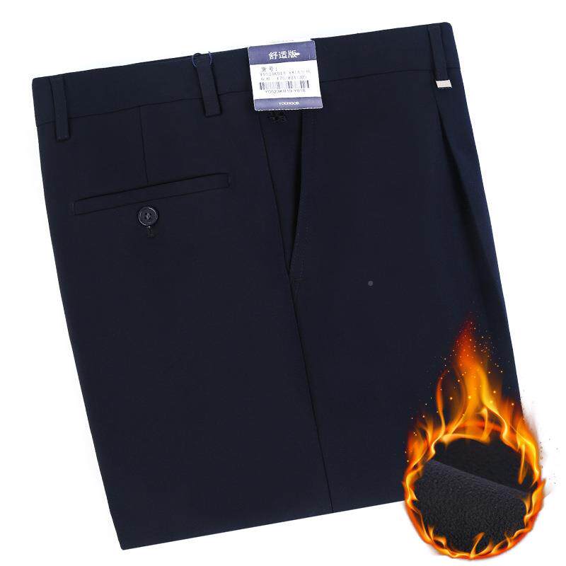 西装 冬装 中老年松宽直筒商务休闲厚百搭保818暖裤 加绒加西裤 男式
