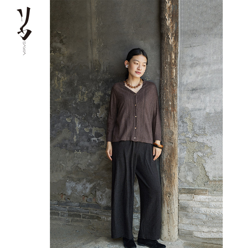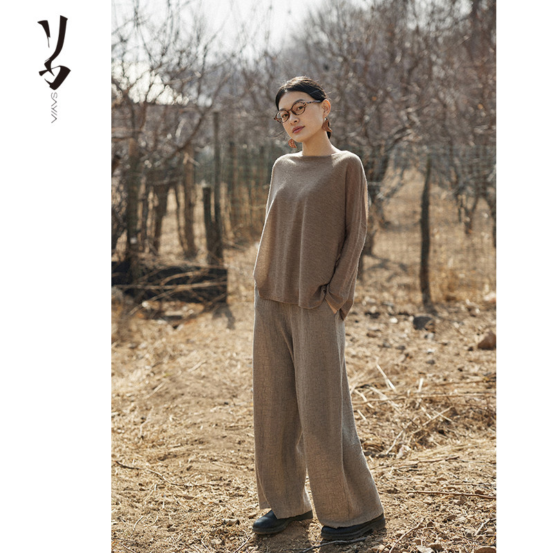 垂落 卓 80支精纺羊绒错纹提花阔腿裤 质感 灵感小匠 Say