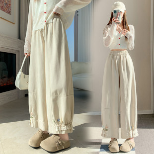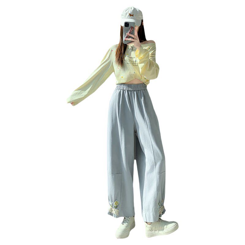 九分哈伦束脚裤 休闲运动卫裤 子 女春夏2026新款 拉夏贝尔蓝色花苞裤