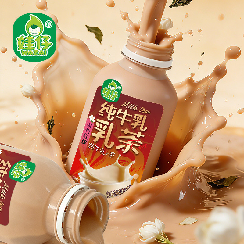 娃仔纯牛乳乳茶茉莉绿茶奶茶茉莉红茶乳茶纯牛乳拿铁咖啡