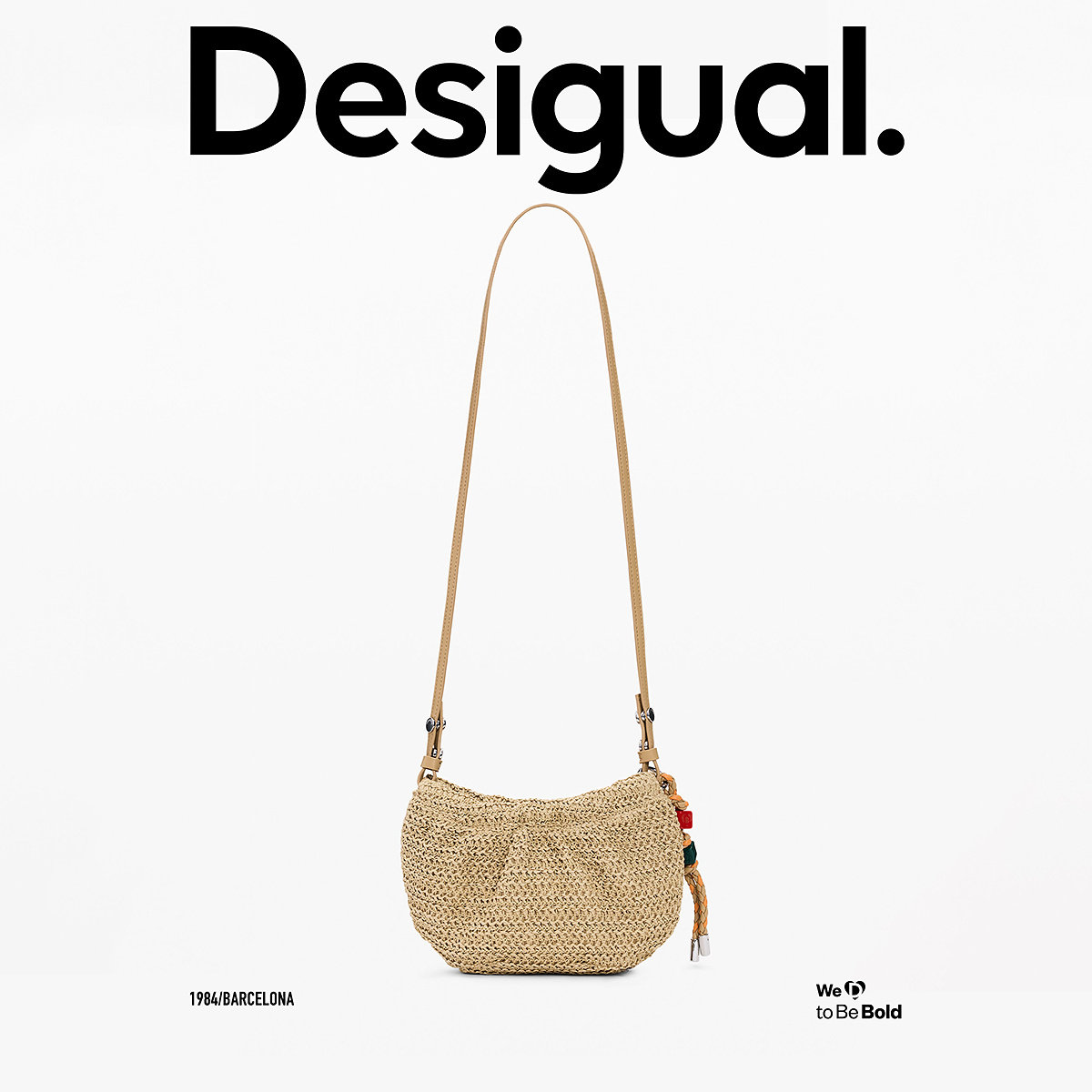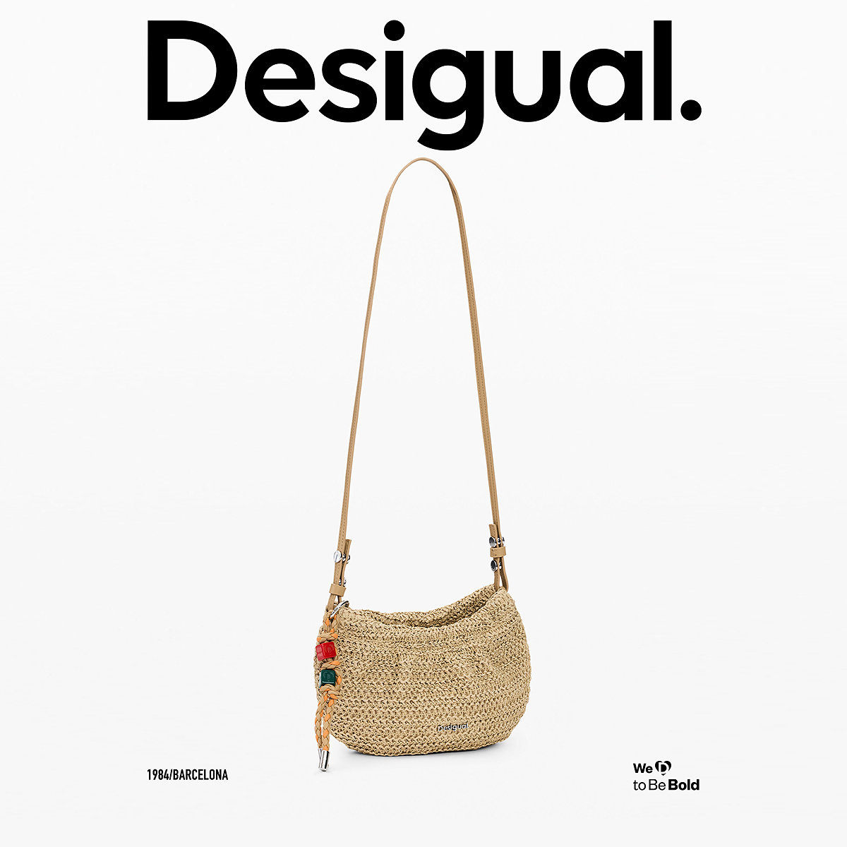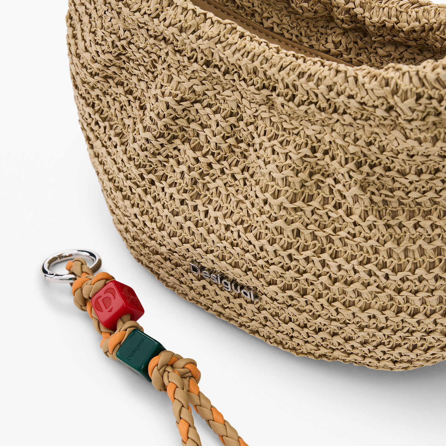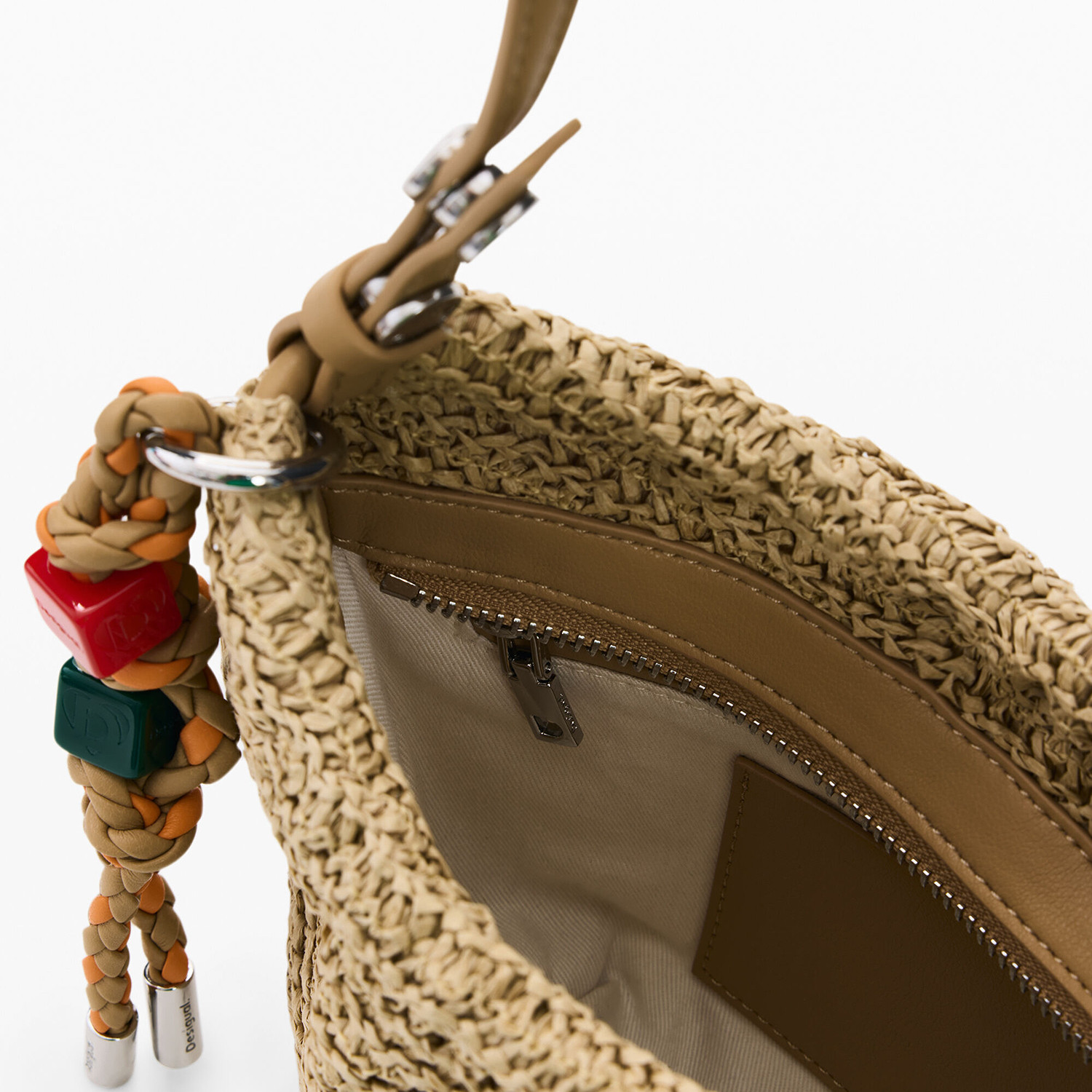 Desigual26春夏新品 草编拉链开合彩色编织绳手提单肩包
