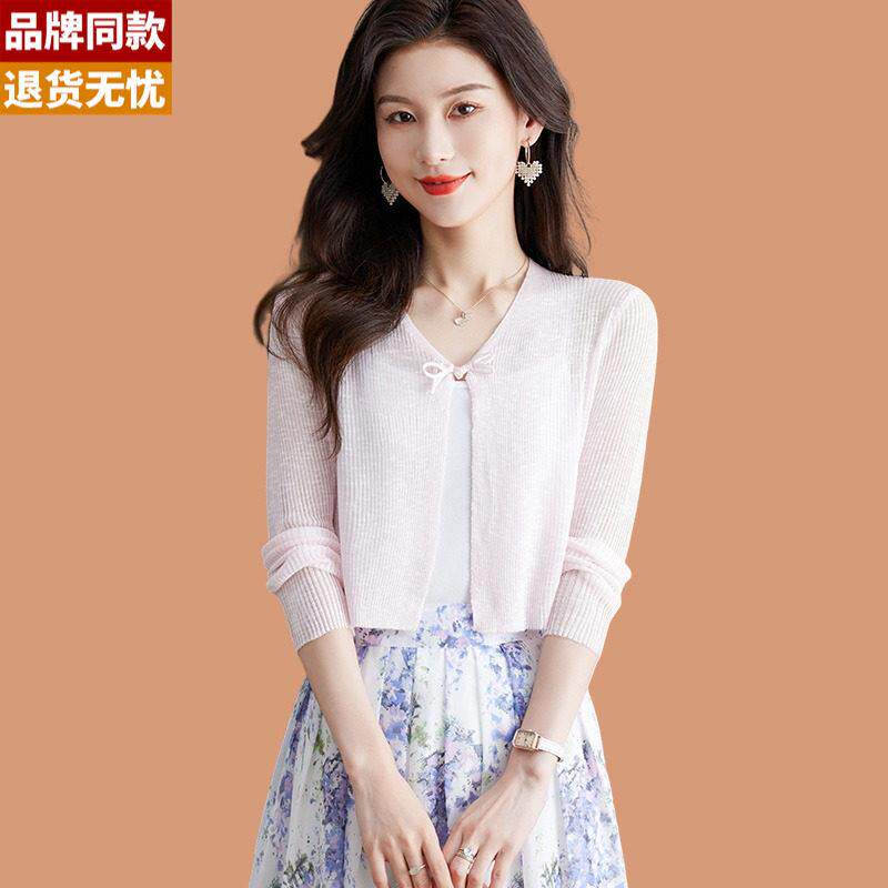 配吊带连衣裙子桑蚕丝针织上衣 外搭披肩夏季 冰丝防晒小开衫 女薄款