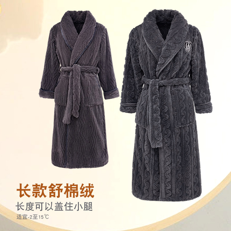 睡袍加厚加绒珊瑚绒家居服 法兰绒长款 睡衣男士 秋冬浴袍2023年新款