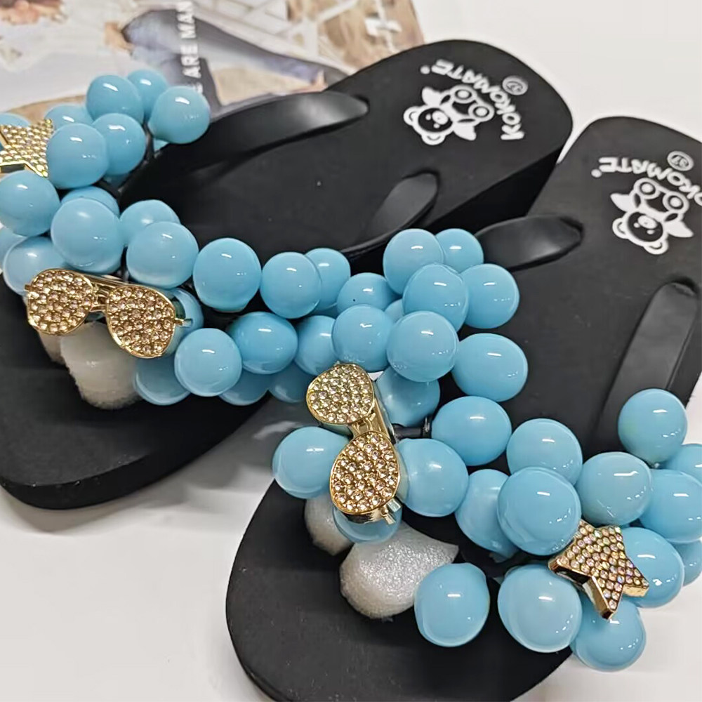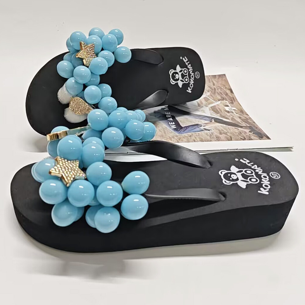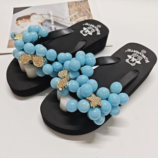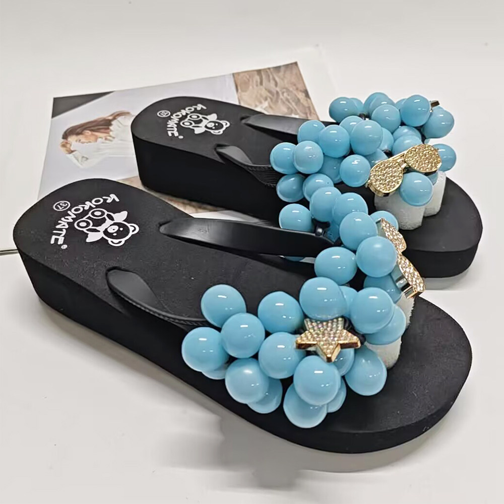 海边沙滩凉拖网红鞋 DIY葡萄拖鞋 甜美沙滩人字拖厚底松糕跟凉拖鞋
