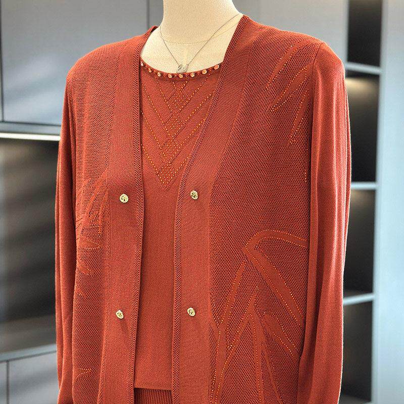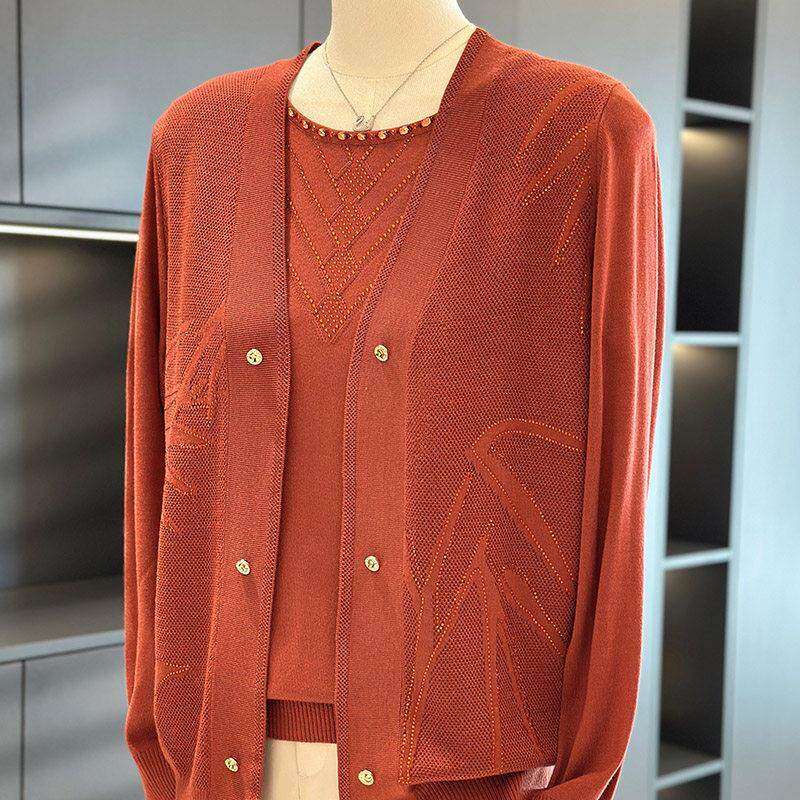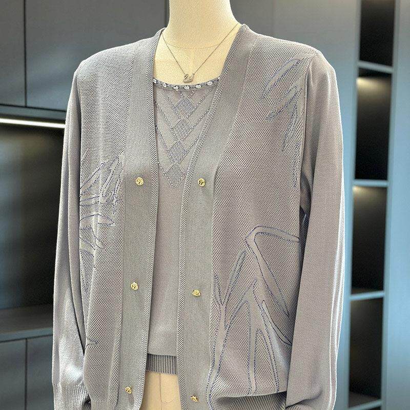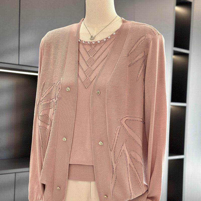 两件套女开 衫 春装 时尚 上衣气质百搭中老年套装 针织衫 新款 妈妈装