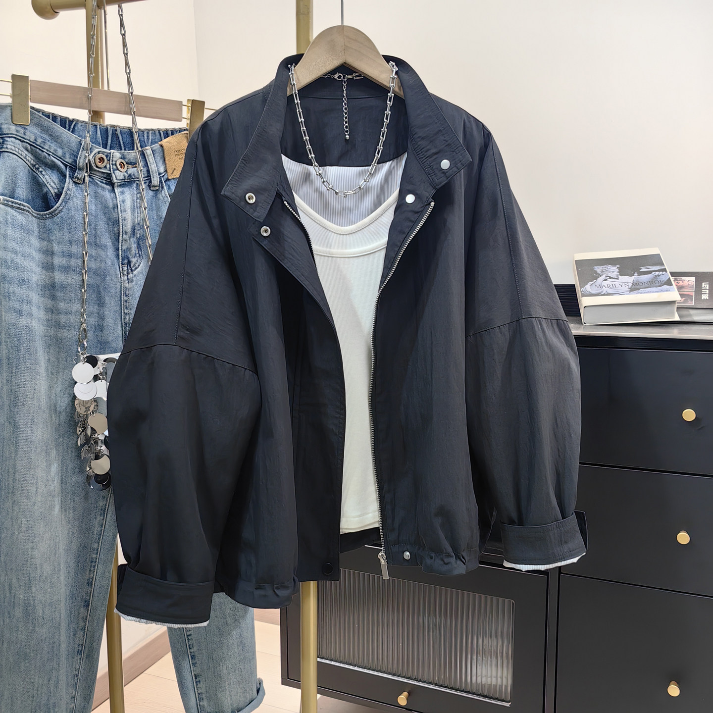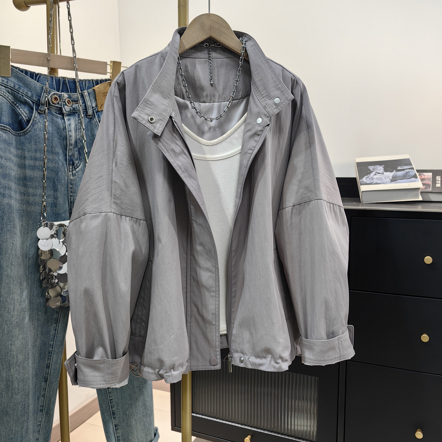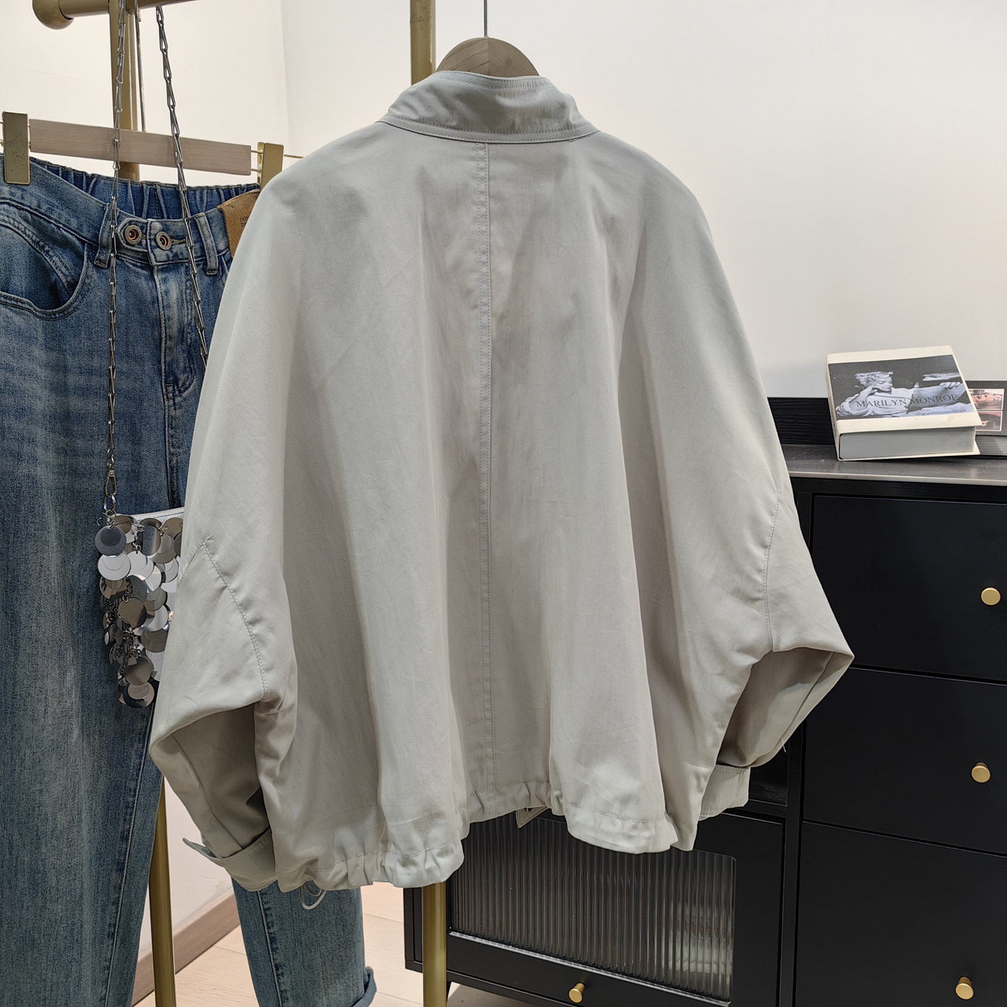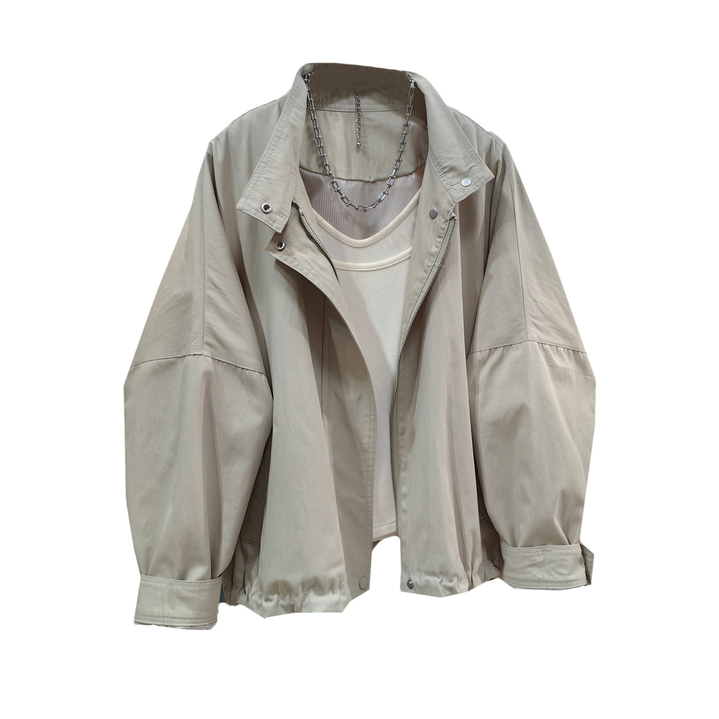 小个子短款 宽松立领休闲蝙蝠袖 风衣外套 夹克女春新款 韩系慵懒工装