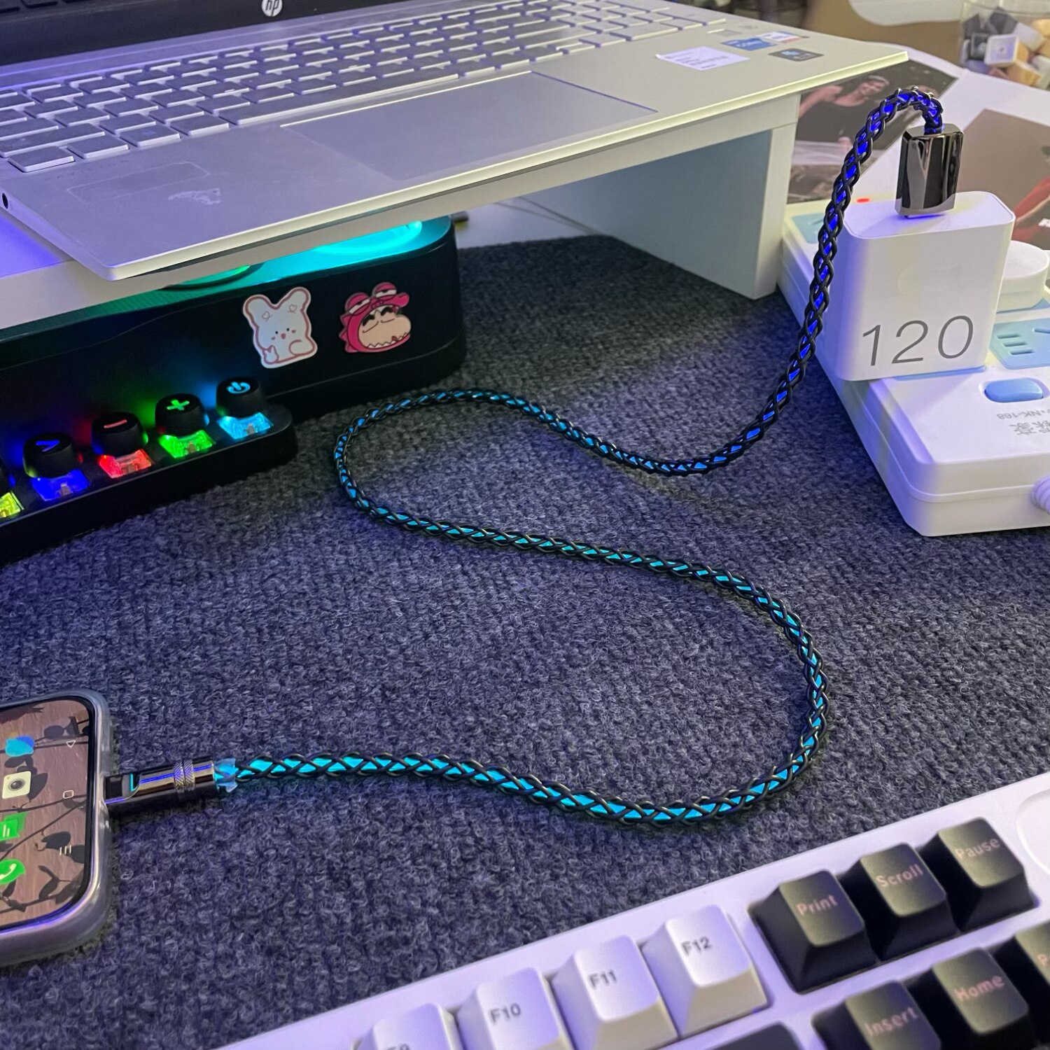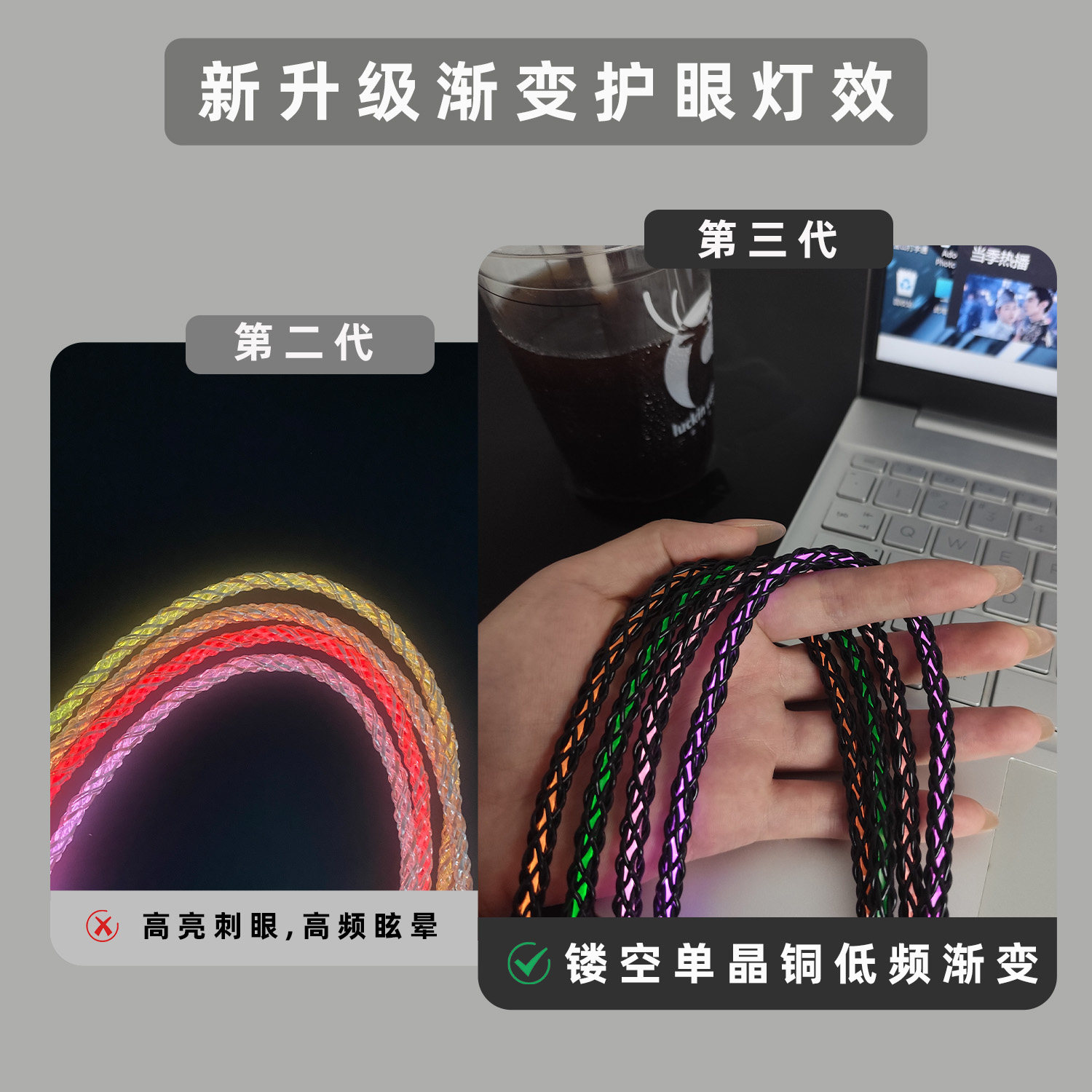单晶铜发光镂空点阵发七色光数据线手机充电线适用安卓苹果16iPhone17充电线120W超级快充华为vivoType C超快