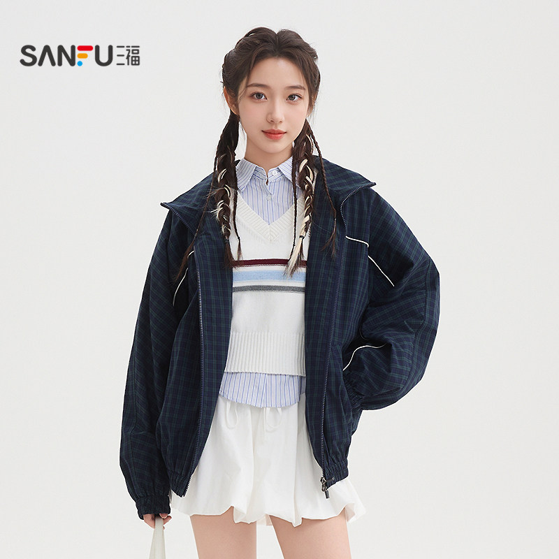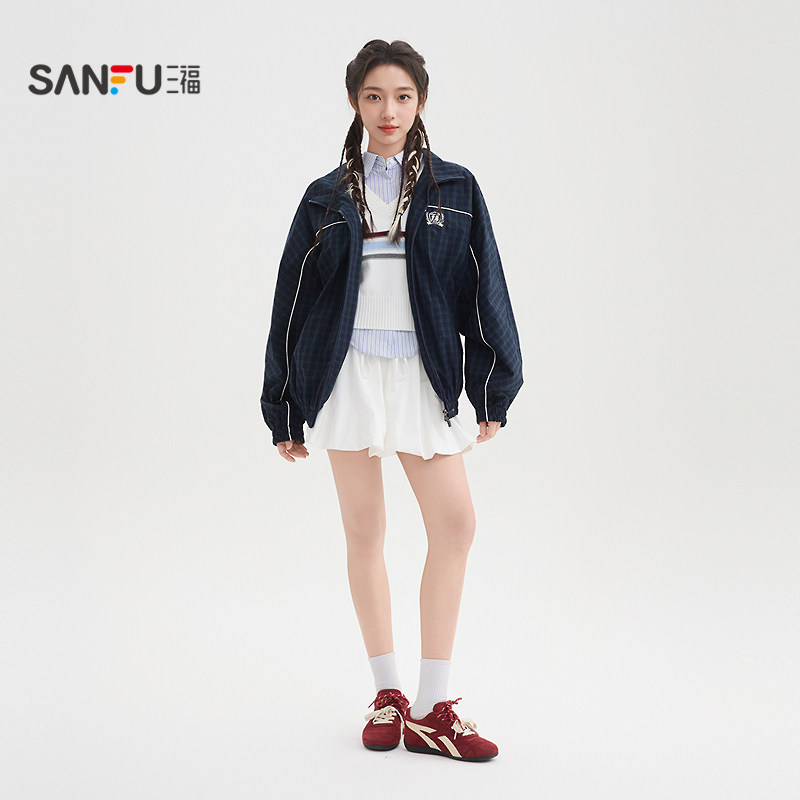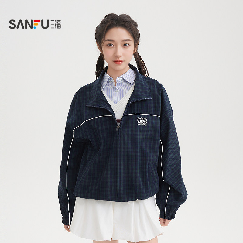 517588 子徽章翻领夹克女装 三福单外套2026春季 街潮学院风格