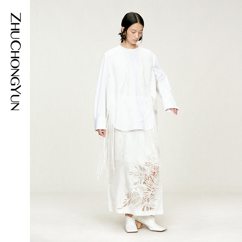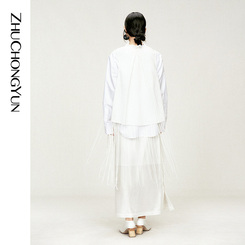 白色流苏设计感马甲背心 ZHUCHONGYUN2026春新款 天然苎麻