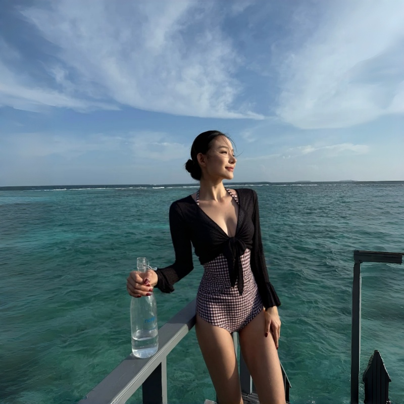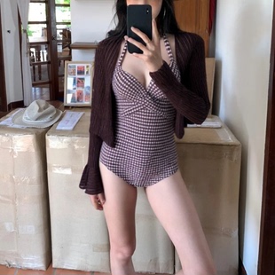 2026新款 游泳衣温泉显瘦绝美 纯欲钢托泳衣女连体高级感度假带罩衫
