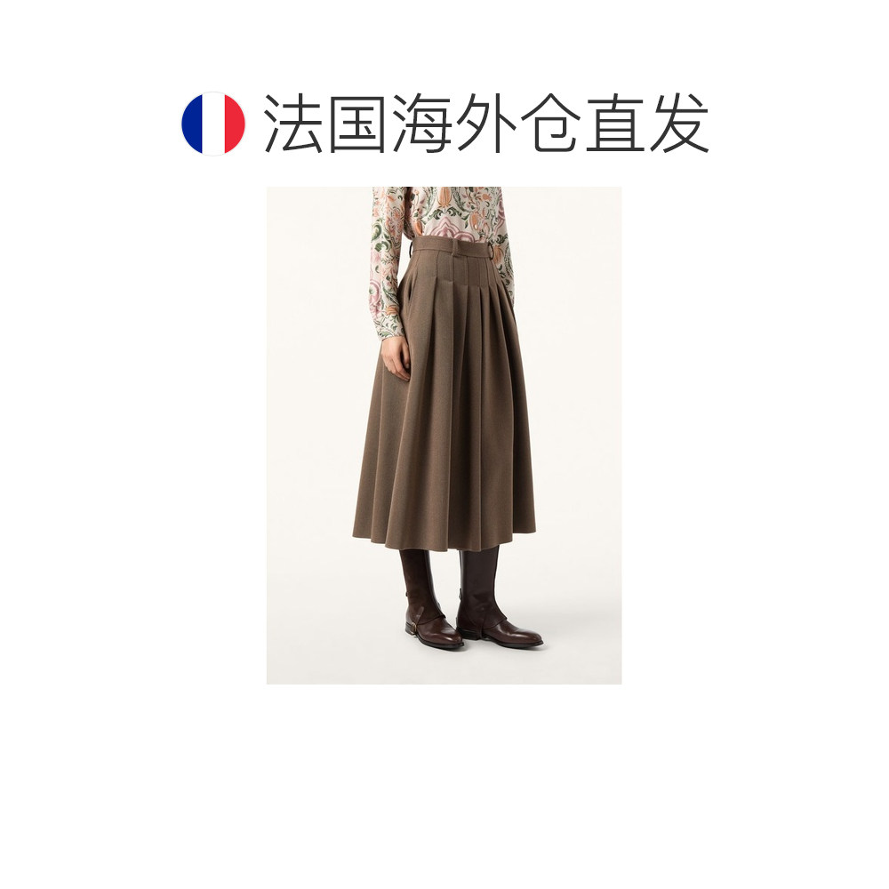 阔腿裤 自营欧洲直邮Loro 裙裤 女士棕色初剪羊毛休闲裤 Piana