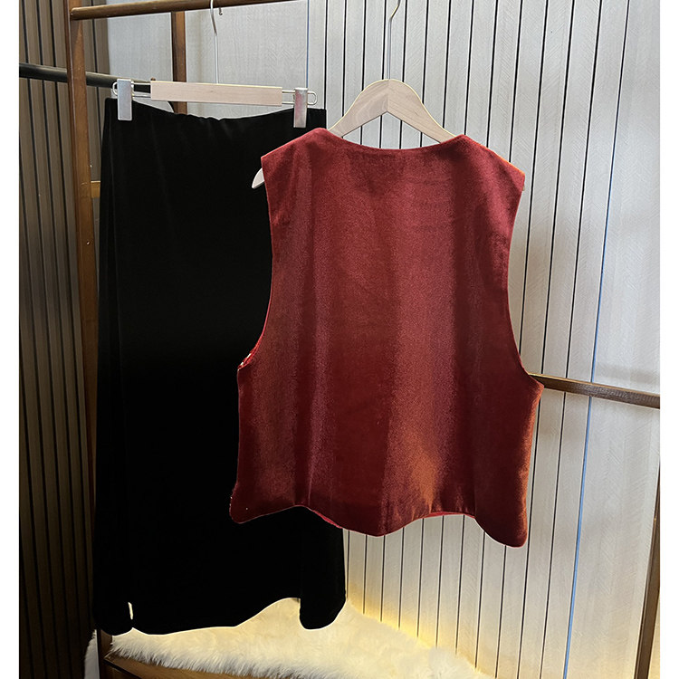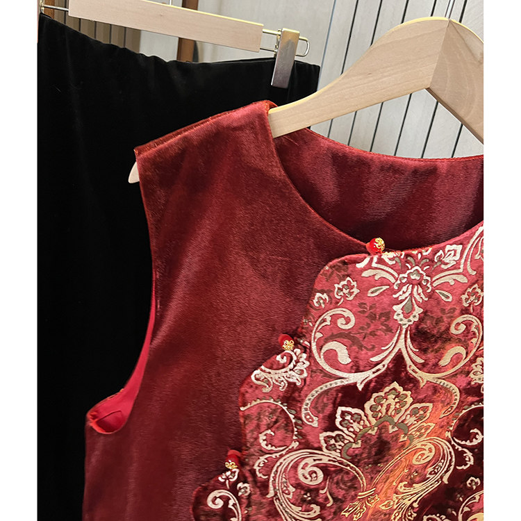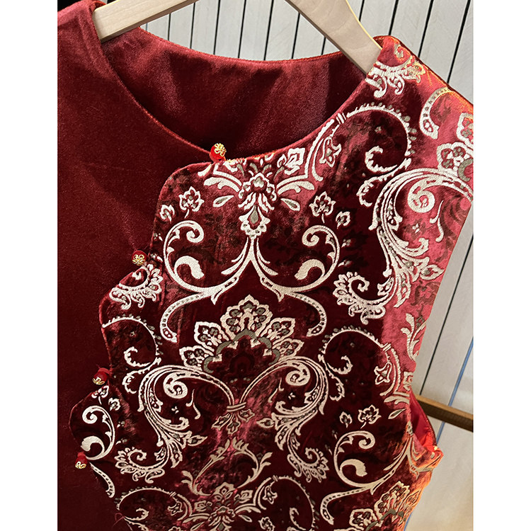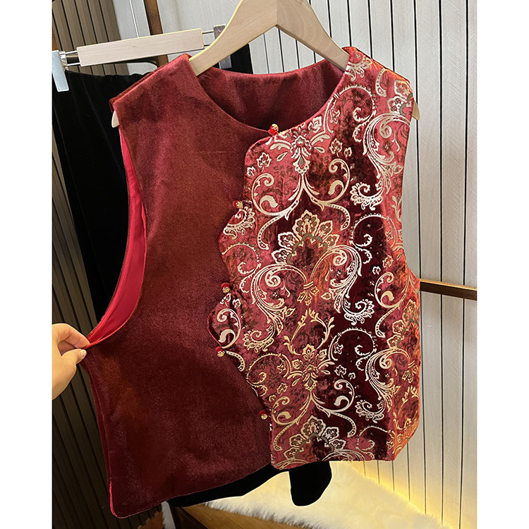 冬季 丝绒提花叠穿马甲 2026年新款 国风女装 红色 改良高端新中式