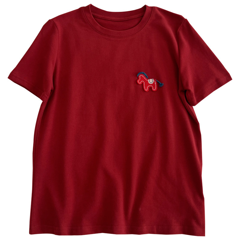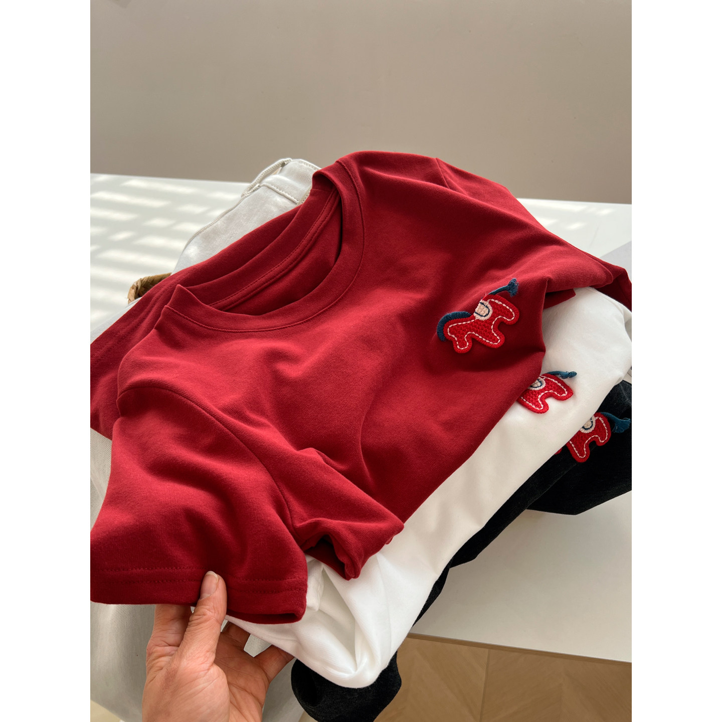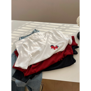 小马刺绣圆领短袖 新款 t恤女修身 春季 学生减龄 厚实内搭打底衫 韩版