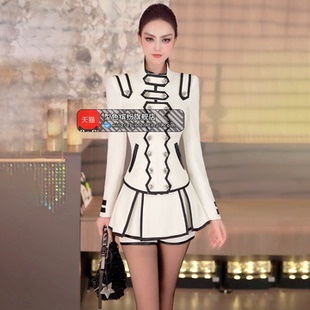 气质减龄辣妹风套装 两件套2026新款 英伦风撞色短上衣百褶裙裤 春装