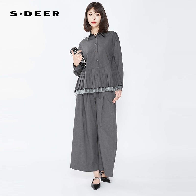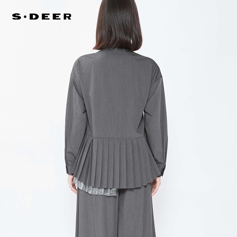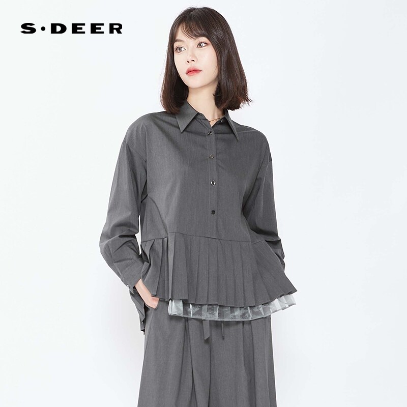 衬衫 休闲翻领压褶不规则长袖 S243Z0531 女装 sdeer圣迪奥春秋装