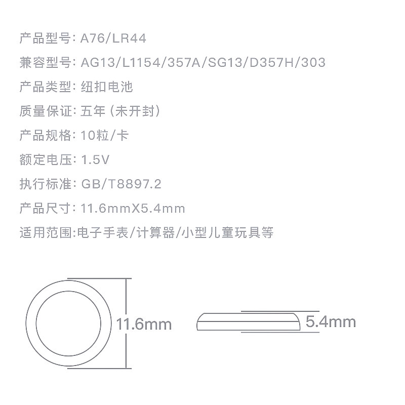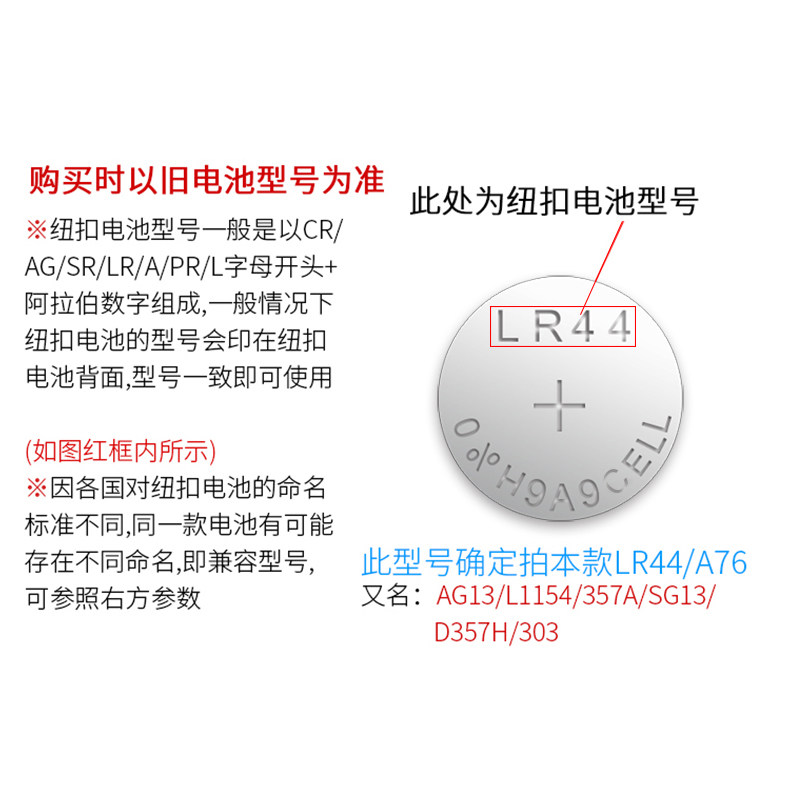LR44纽扣电池电子AG13玩具LR44W遥控器357A钮扣L1154手表SR44游标