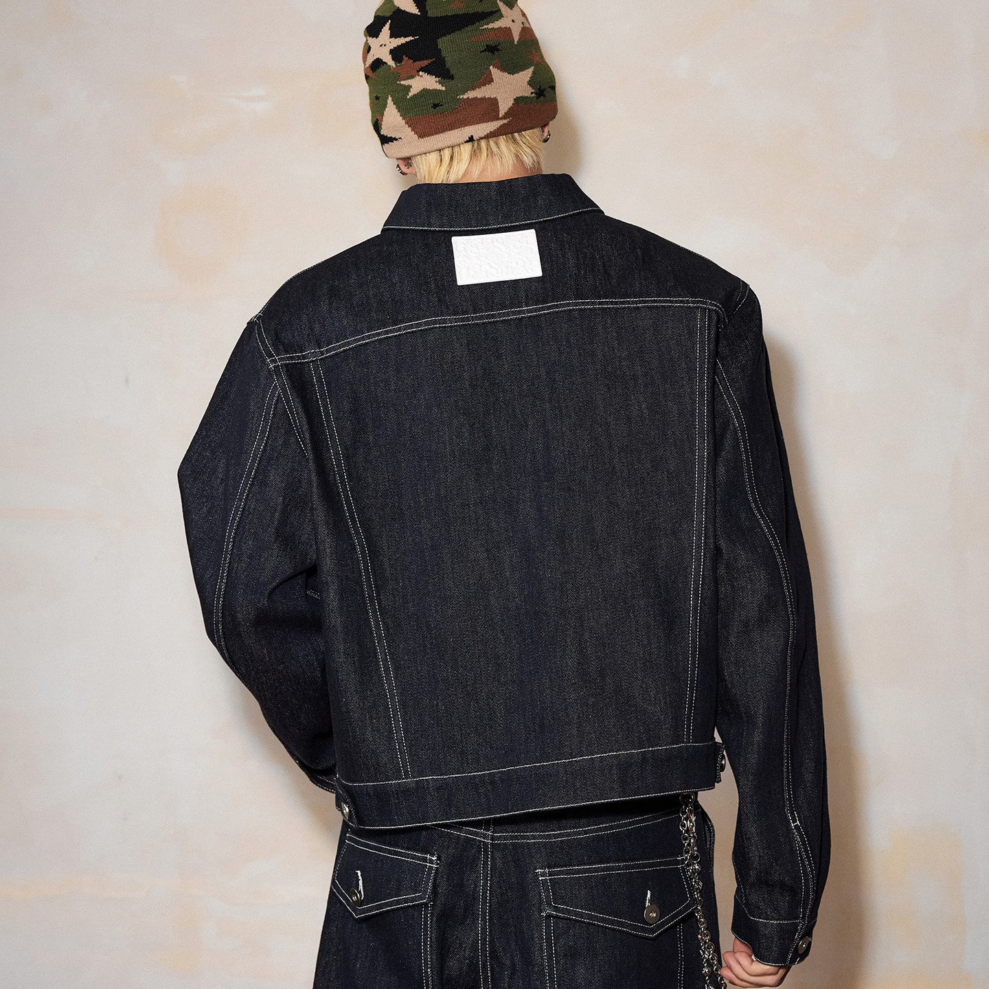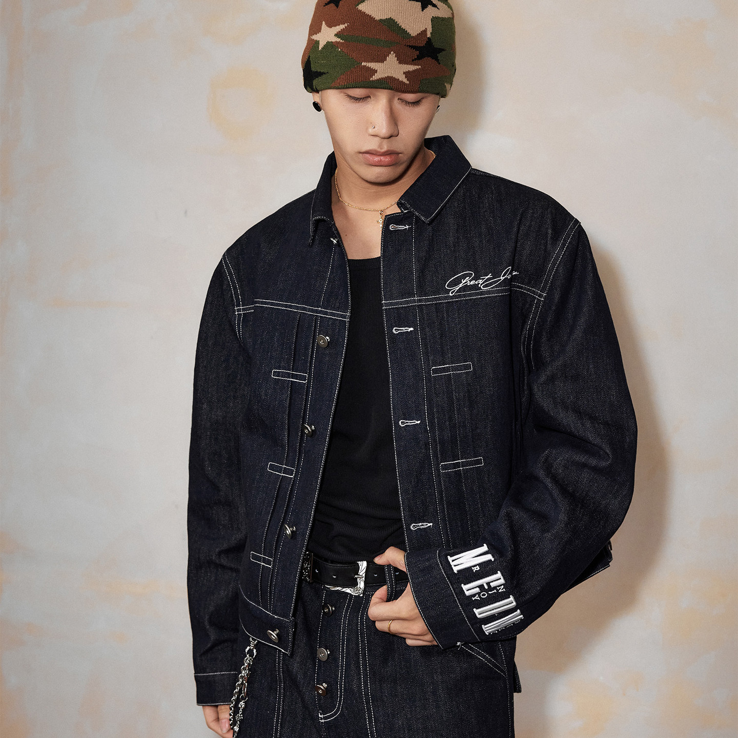 口字母刺绣休闲外套潮流宽松翻领牛仔夹克男 袖 MEDM 原牛基础套装