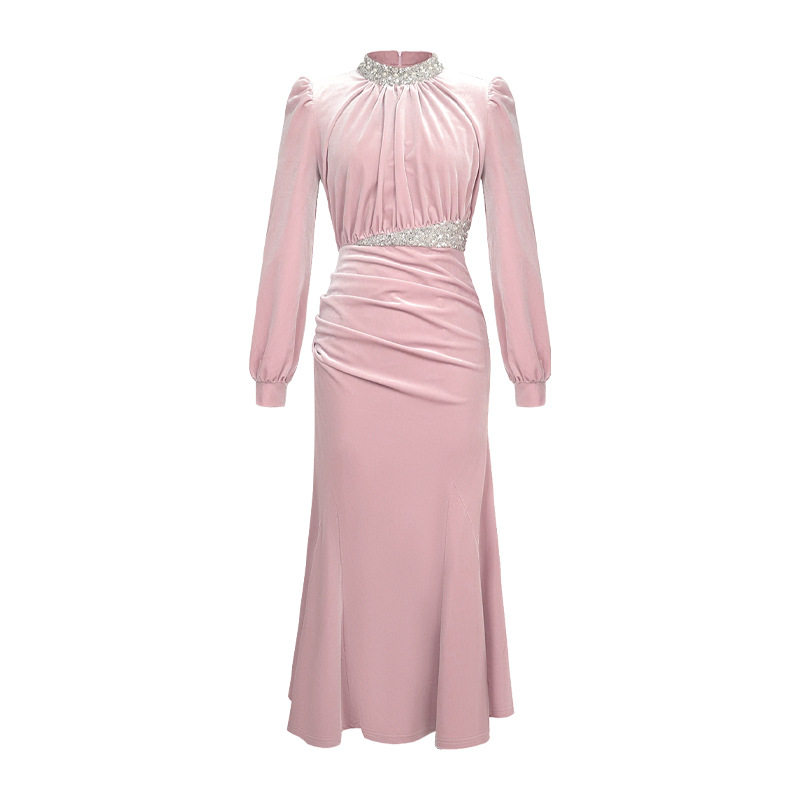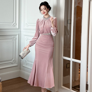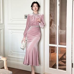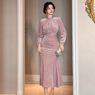 2025秋冬新款 亮片丝绒优雅鱼尾连衣裙名媛收腰显瘦高端晚礼服 法式
