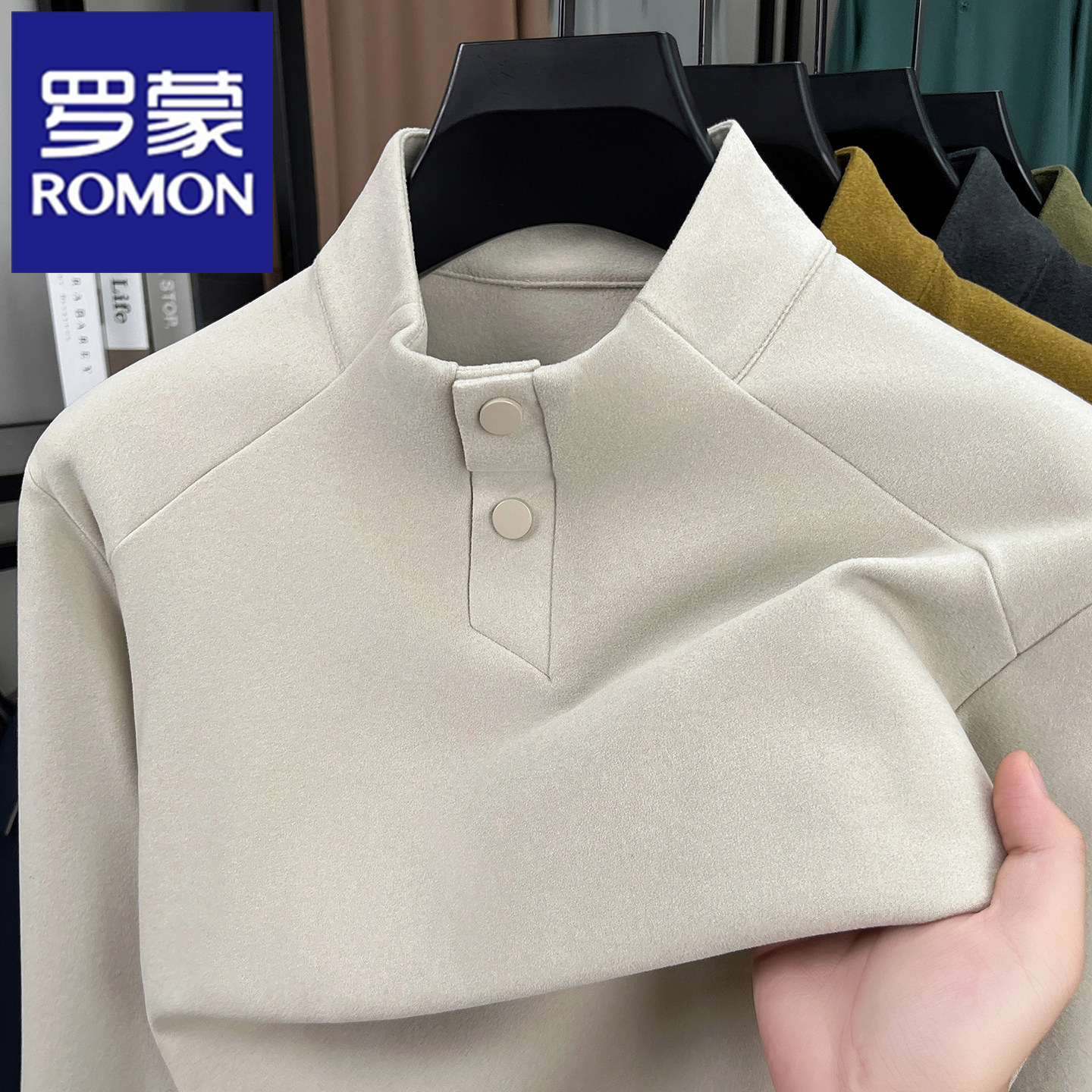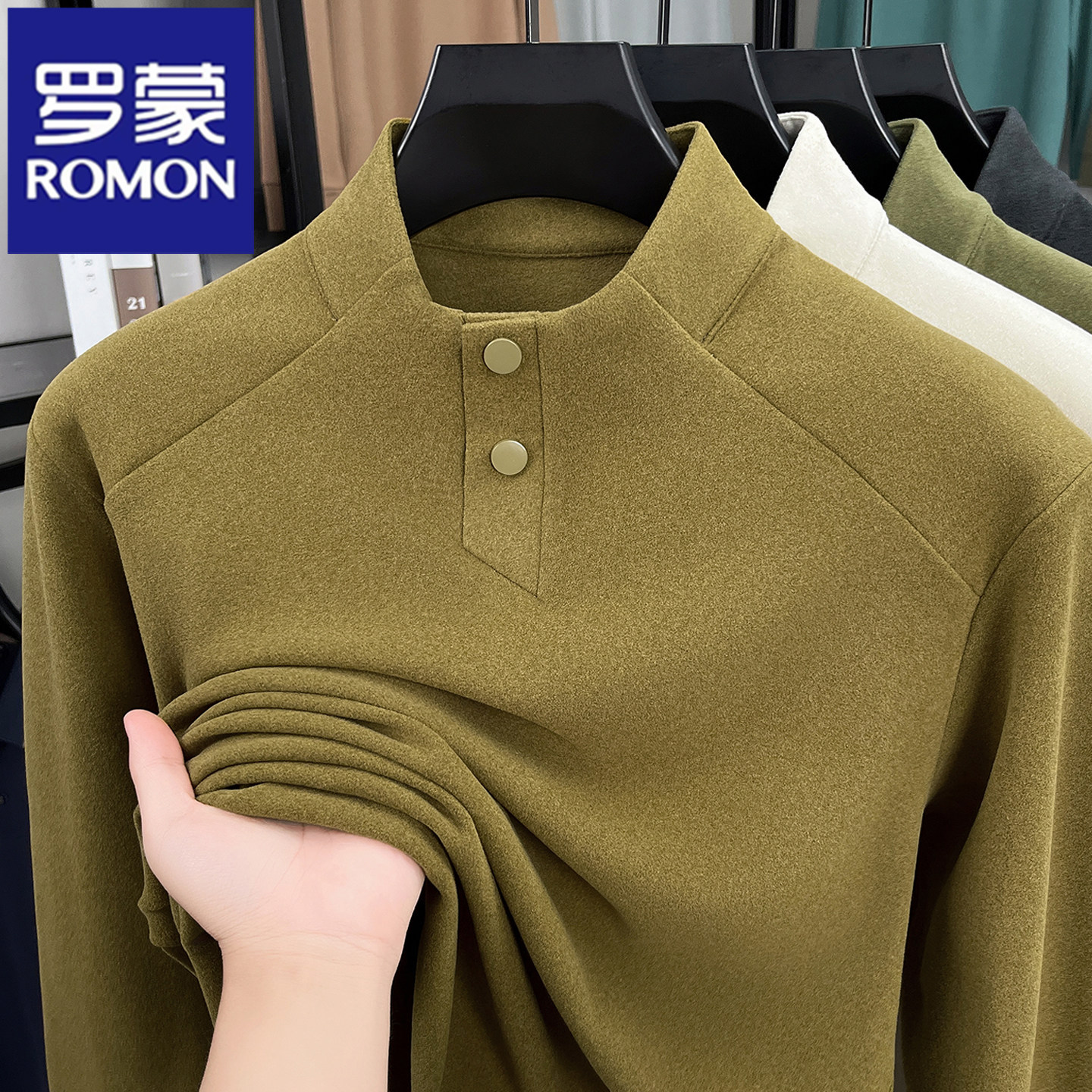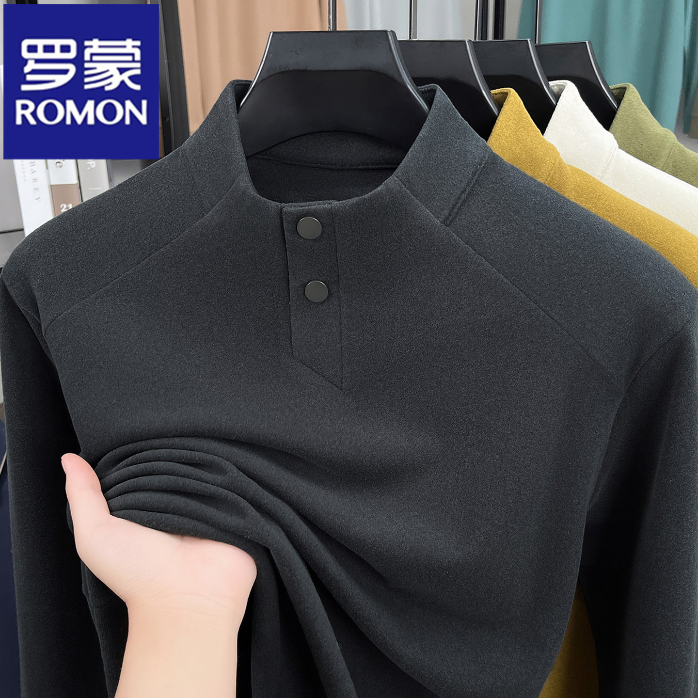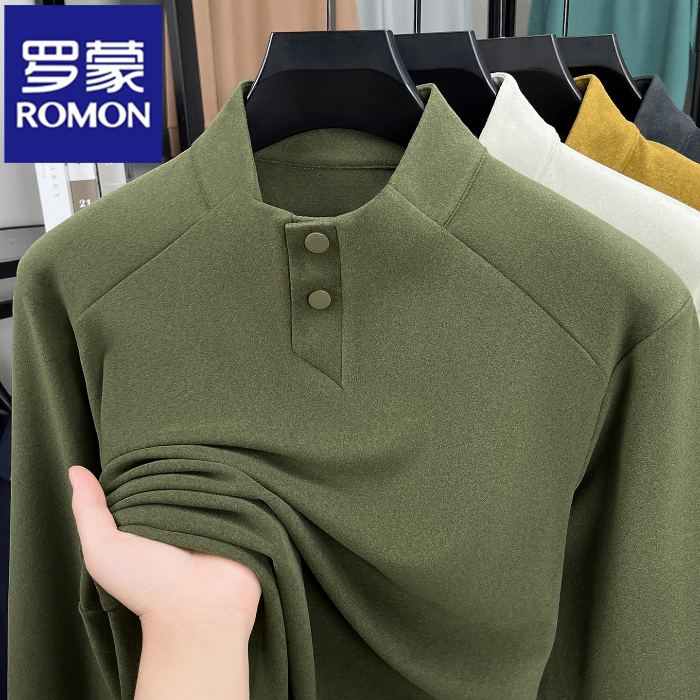 中青年2025新款 罗蒙正品 T恤半高领德绒打底衫 长袖 上衣服 秋冬男士