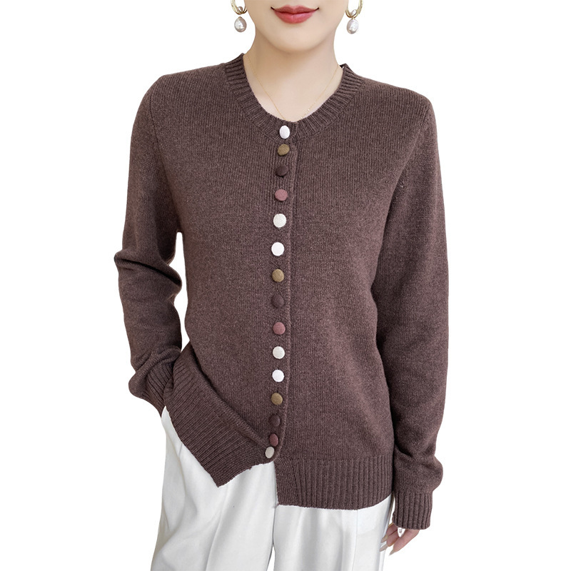 上衣 开衫 文艺复古彩色纽扣圆领毛衣外套女宽松短款 洋气秋冬针织衫
