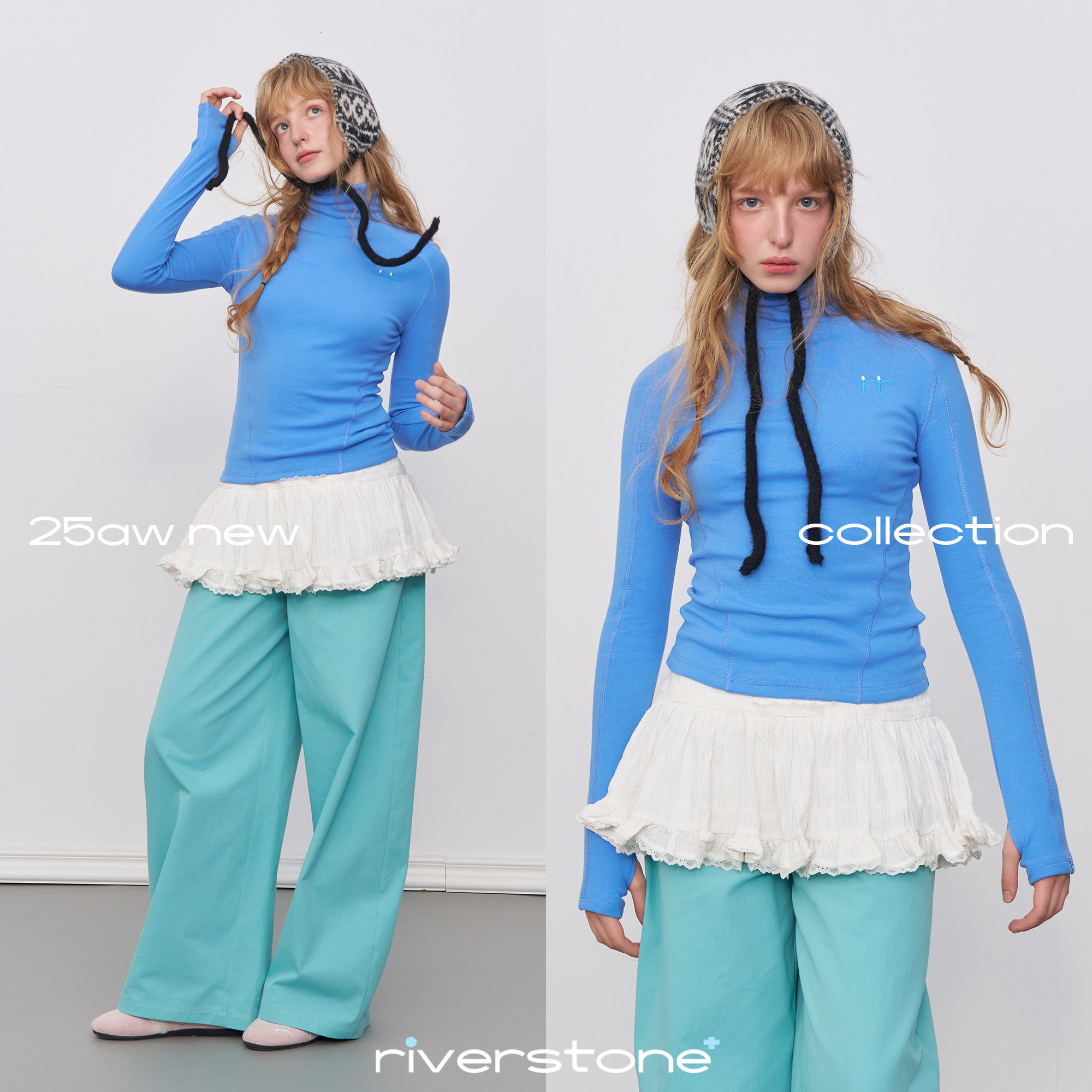 plus 刺绣打底衫 高领纯色长袖 加厚修身 上衣 T恤女冬季 riverstone