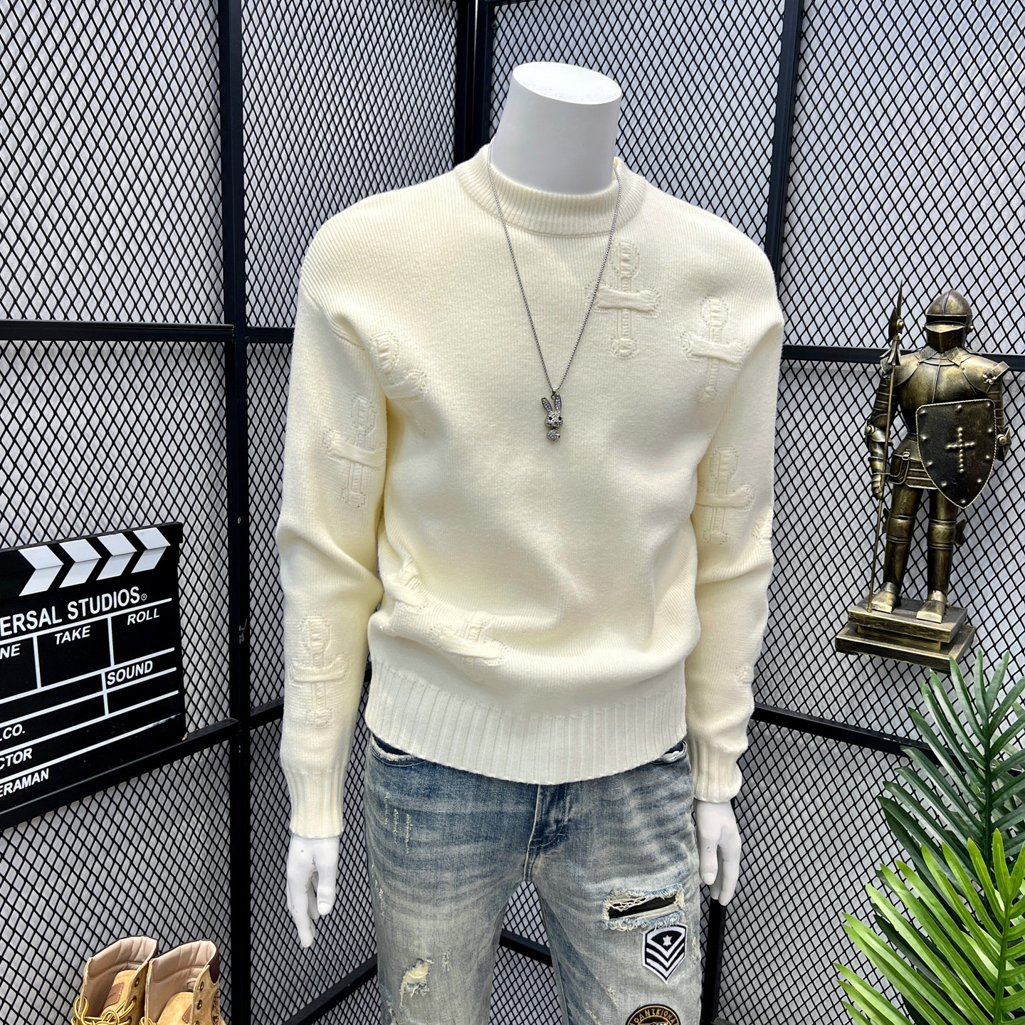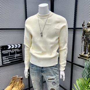 提花毛衣2025新款 针织衫 秋冬季 潮牌男装 加厚线衣内搭打底线衫 男士