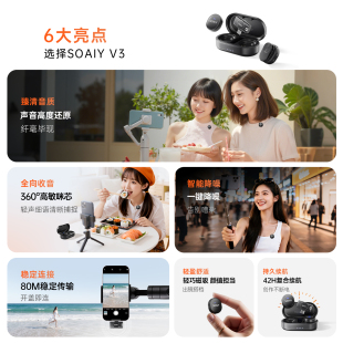 索爱V3直播无线麦克风夹领式 收音麦手机电脑主播录音降噪专用设备