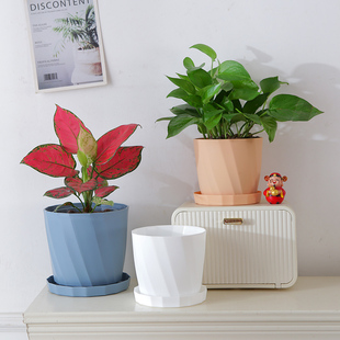 芊之岛塑料花盆北欧大口径树脂特大号天堂鸟龟背竹客厅白色笔筒盆