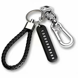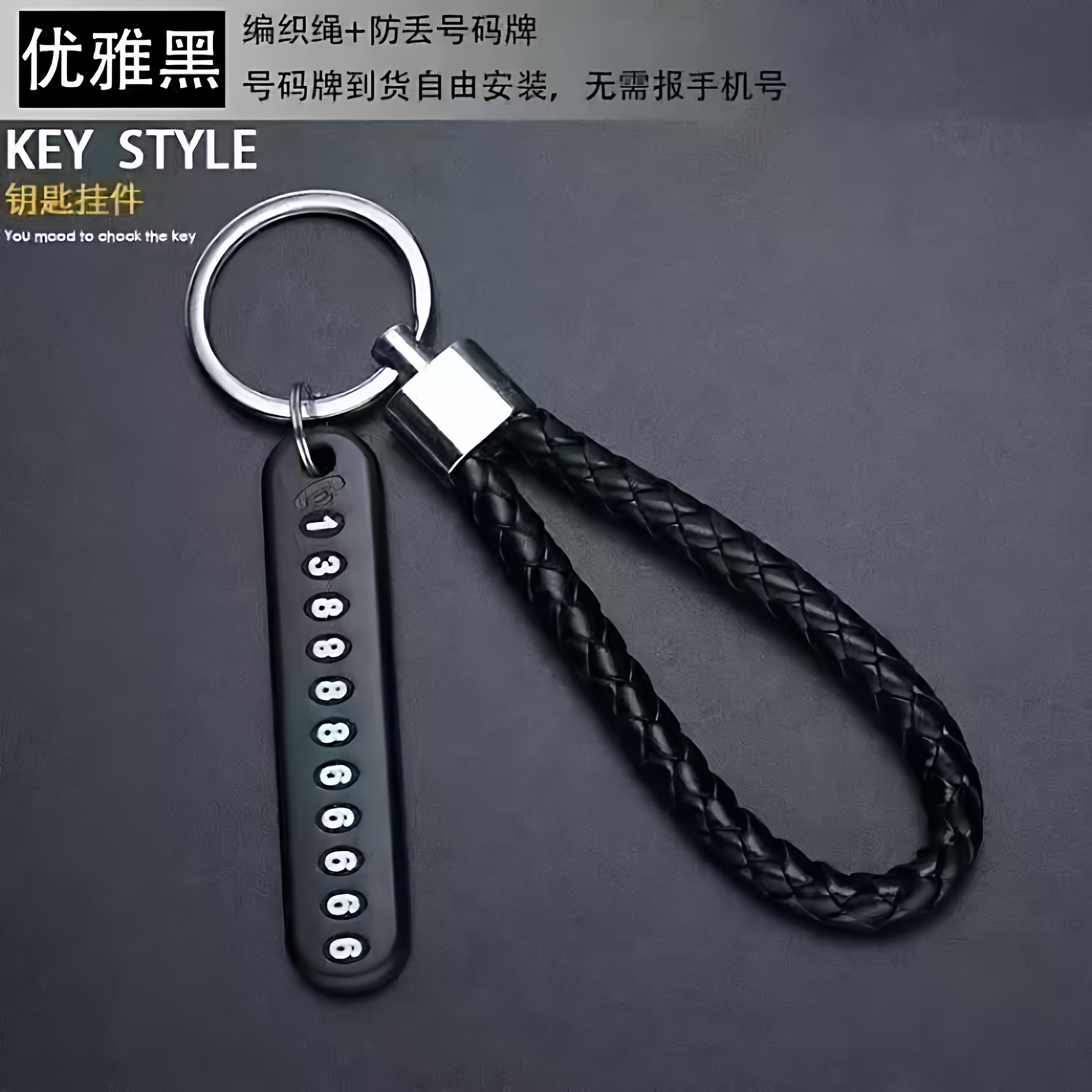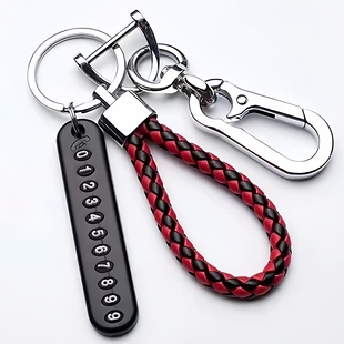 防丢钥匙扣编织绳子号码 牌锁匙链男女 牌创意多功能汽车电话号码