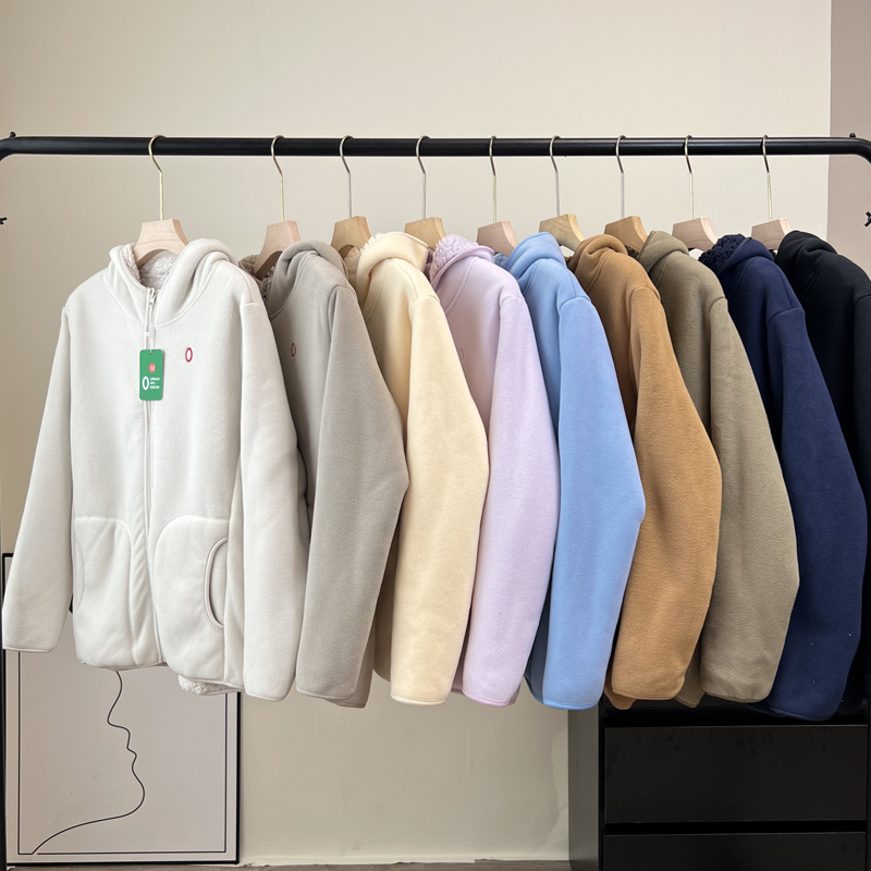 大厂订单 户外防风保暖加厚双面摇粒绒连帽羊羔绒卫衣外套 情侣款