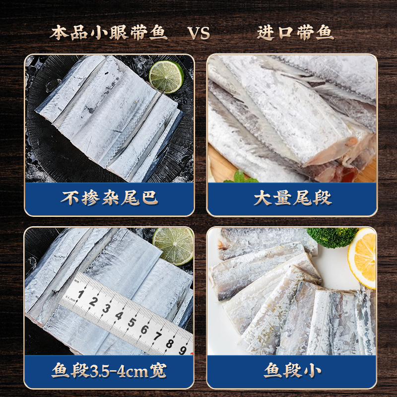 鱼岭岛带鱼段新鲜东海小眼带鱼雷达网去头去尾 4包 净重500g