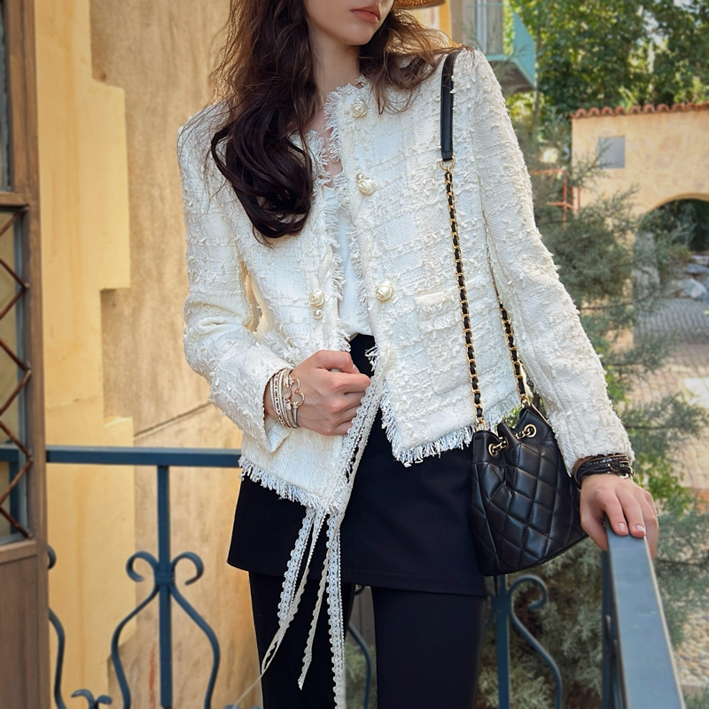 粉红大布娃娃米色小香风短外套女粗花呢上衣2025秋冬 高定系列