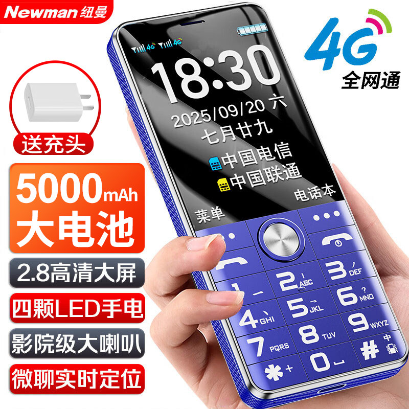 老年手机老人机大字大声大屏微聊定位超级大电池超长待机男女士移动电信4G全网通 纽曼G500新款 官方旗舰店