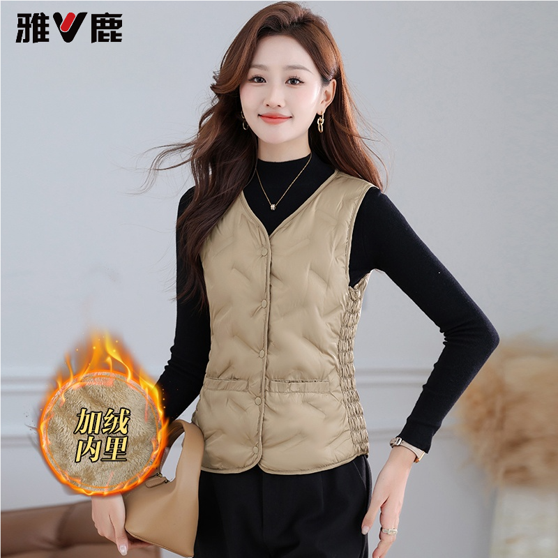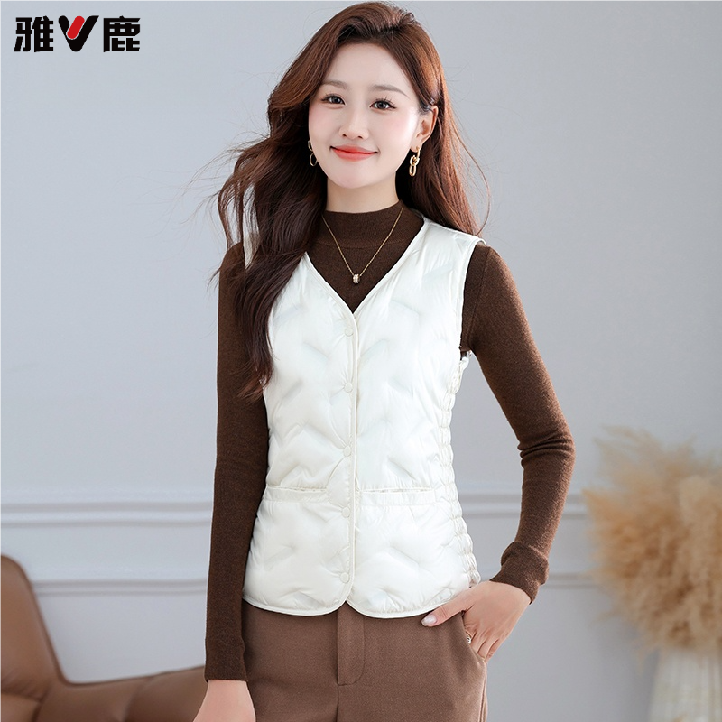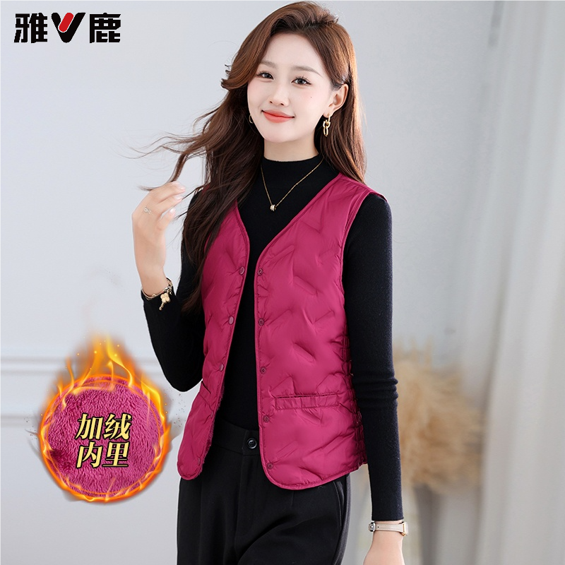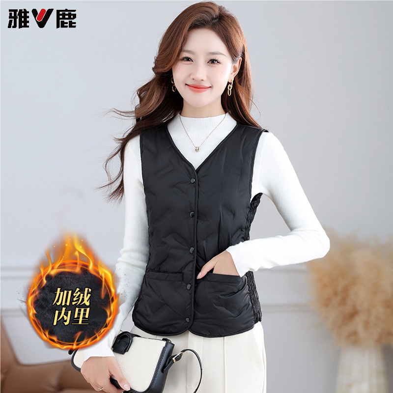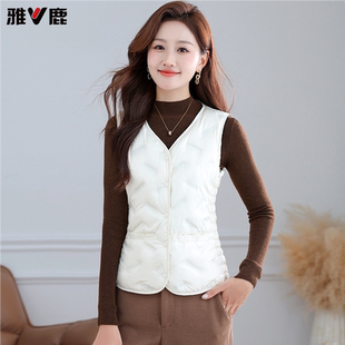 雅鹿羽绒马甲女加绒加厚短款 保暖贴身穿白鸭绒百搭内胆坎肩 妈妈装