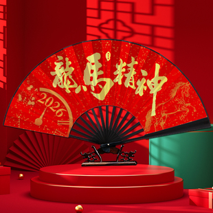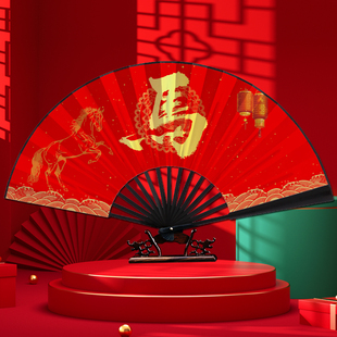 抬龙王真丝酒红万疆舞蹈扇子大双面深红色秧歌古典舞扇广场跳舞