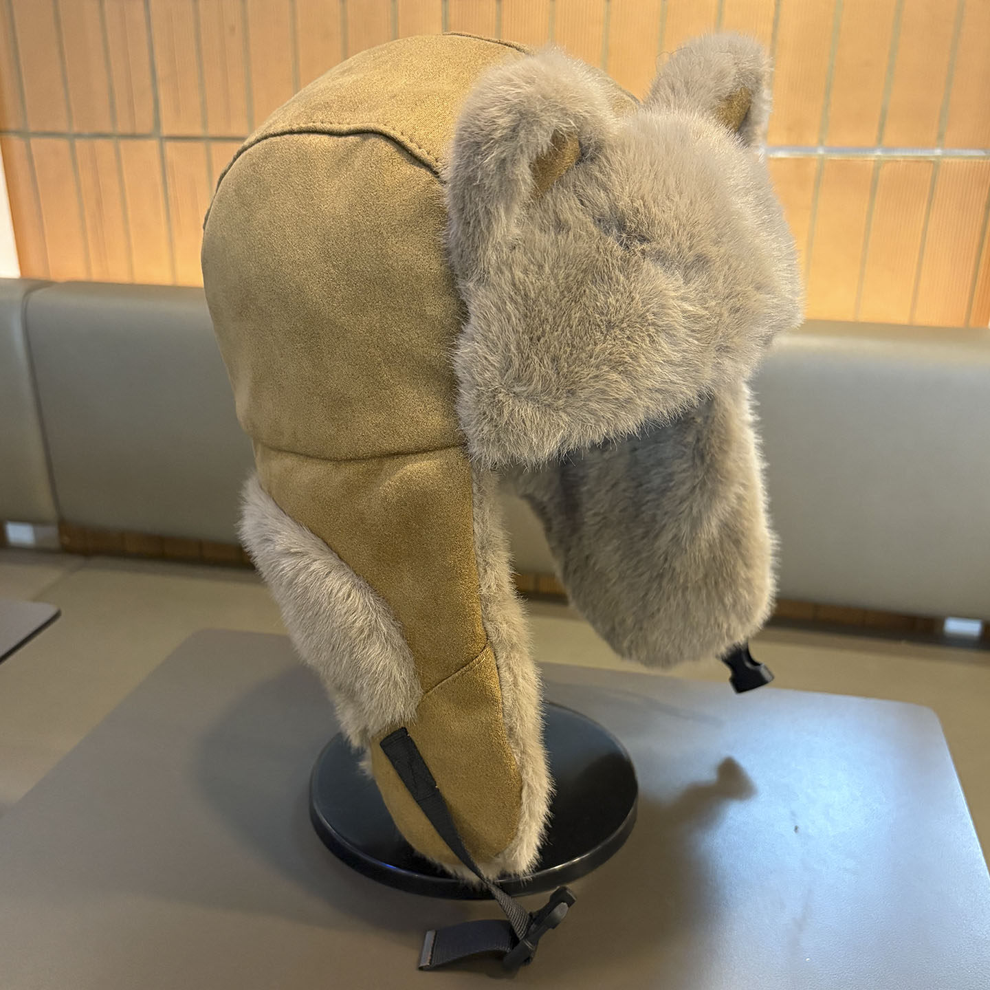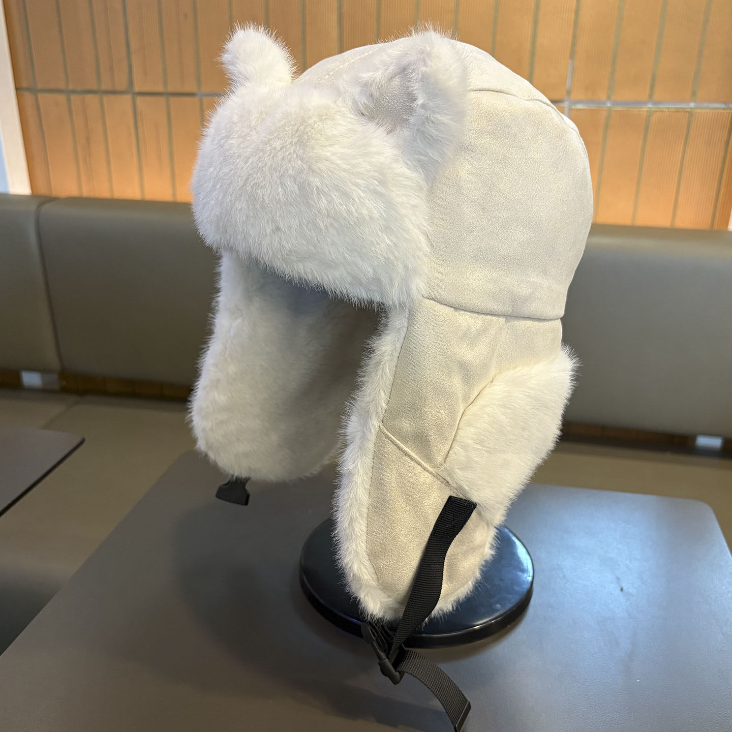 2025秋冬新款 针织帽百搭保暖毛线帽子围脖一体防寒护耳小熊帽骑车