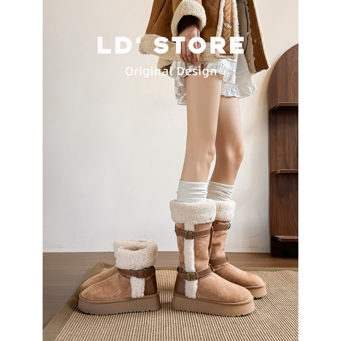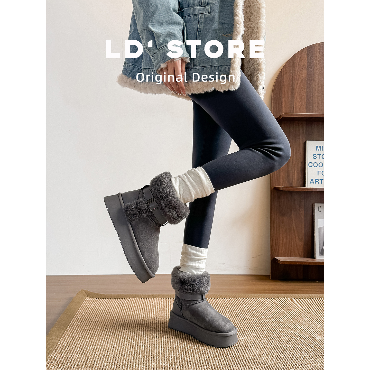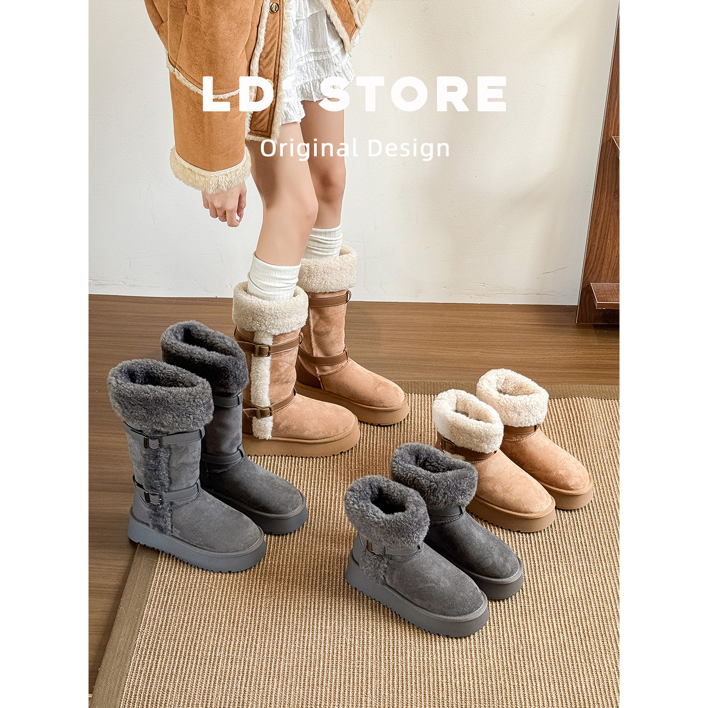 羊羔毛长筒灰色雪地靴 新款 厚底毛毛加绒加厚保暖中筒棉鞋 2025冬季