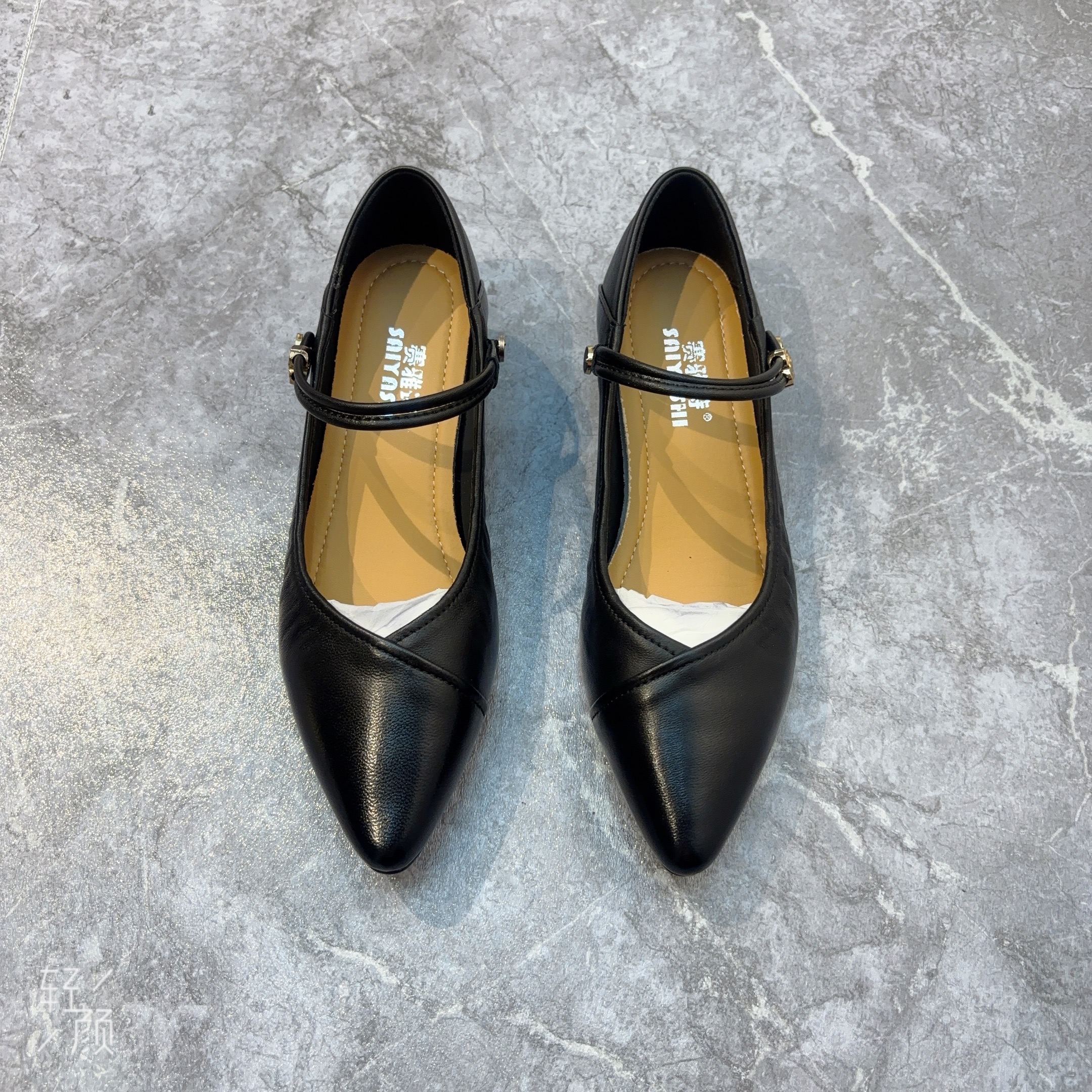 玛丽珍低跟职业女鞋 专柜2025年秋季 粗跟工作皮鞋 羊皮尖头单鞋 新款