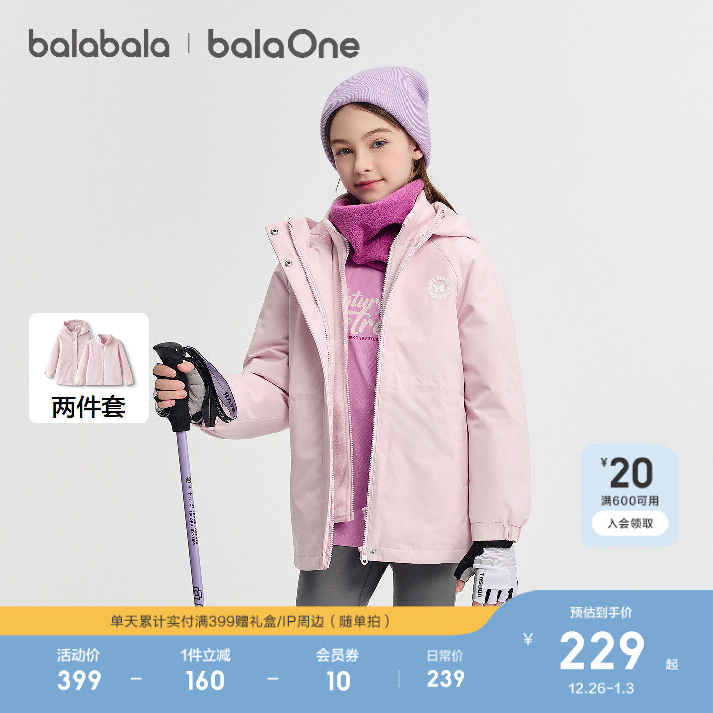 防泼水保暖潮 2025秋冬装 巴拉巴拉童装 儿童棉服女童外套两件套新款